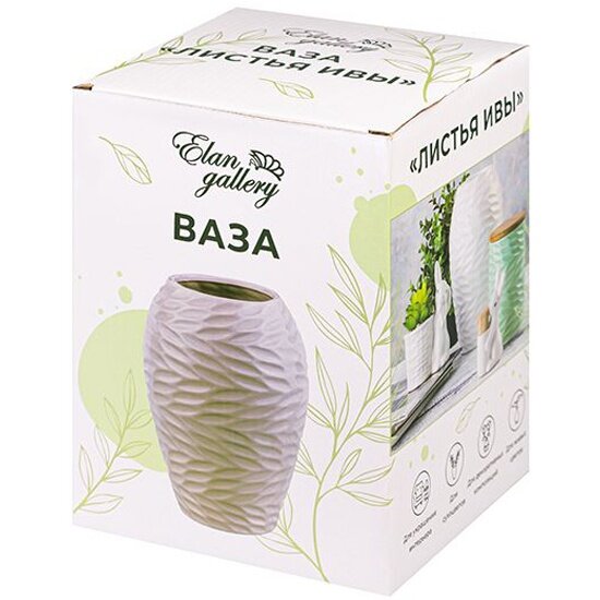 Ваза 15х15х20 см 2,25 л Elan Gallery Листья Ивы латте