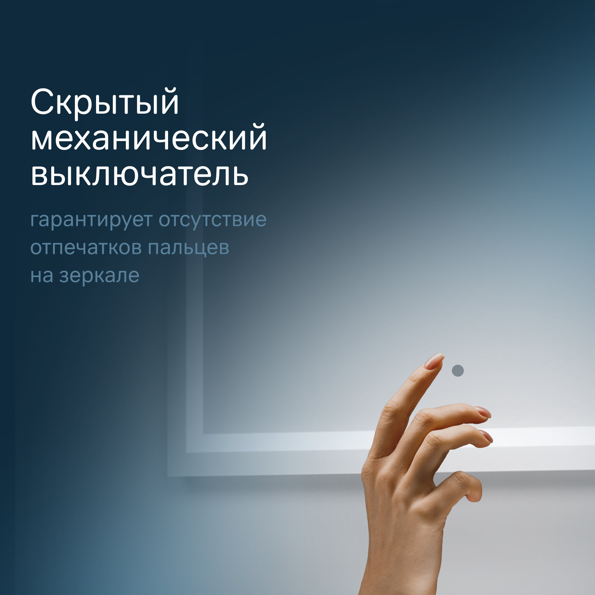Зеркало настенное для ванной КерамаМане 70*100 см с холодной подсветкой 6000 К с сенсорной кнопкой
