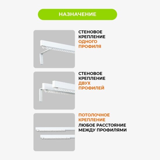 Карниз для штор профильный, настенный, потолочный двухрядный металлический 200 см
