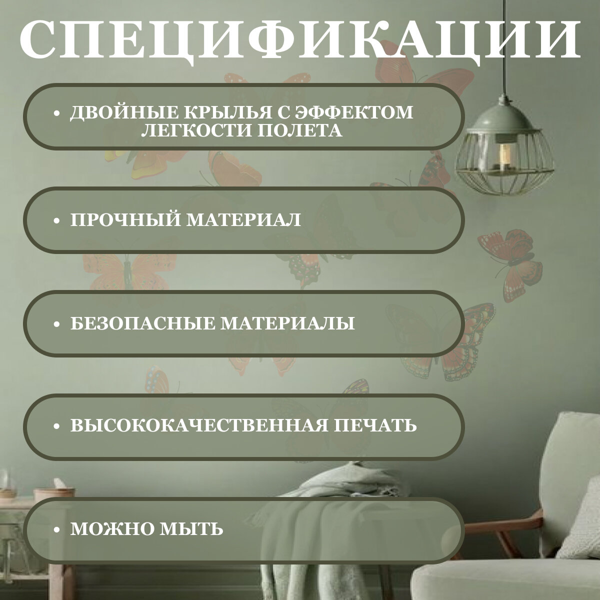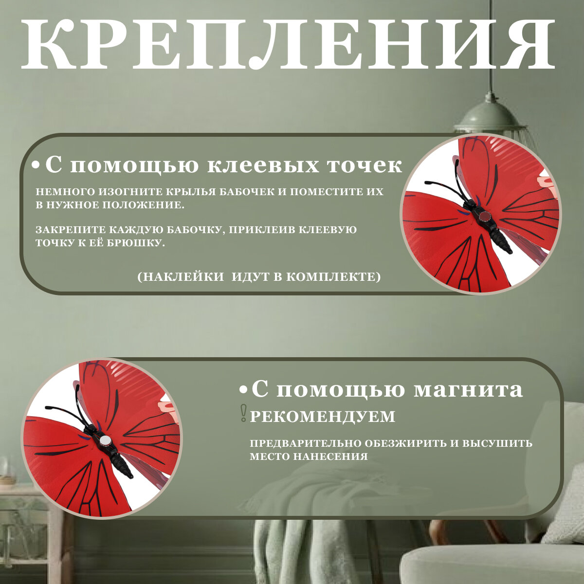 Наклейки бабочки декоративные на магнитах 3Д для интерьера дома. Бабочки для декора