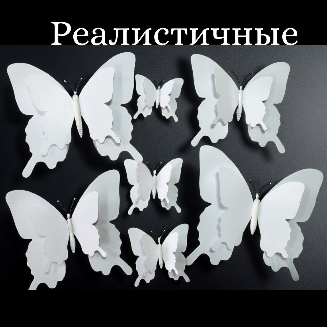 Купить Бабочки белые декоративные 12 штук наклейки на стены 3d. Декор на магнитах бабочки