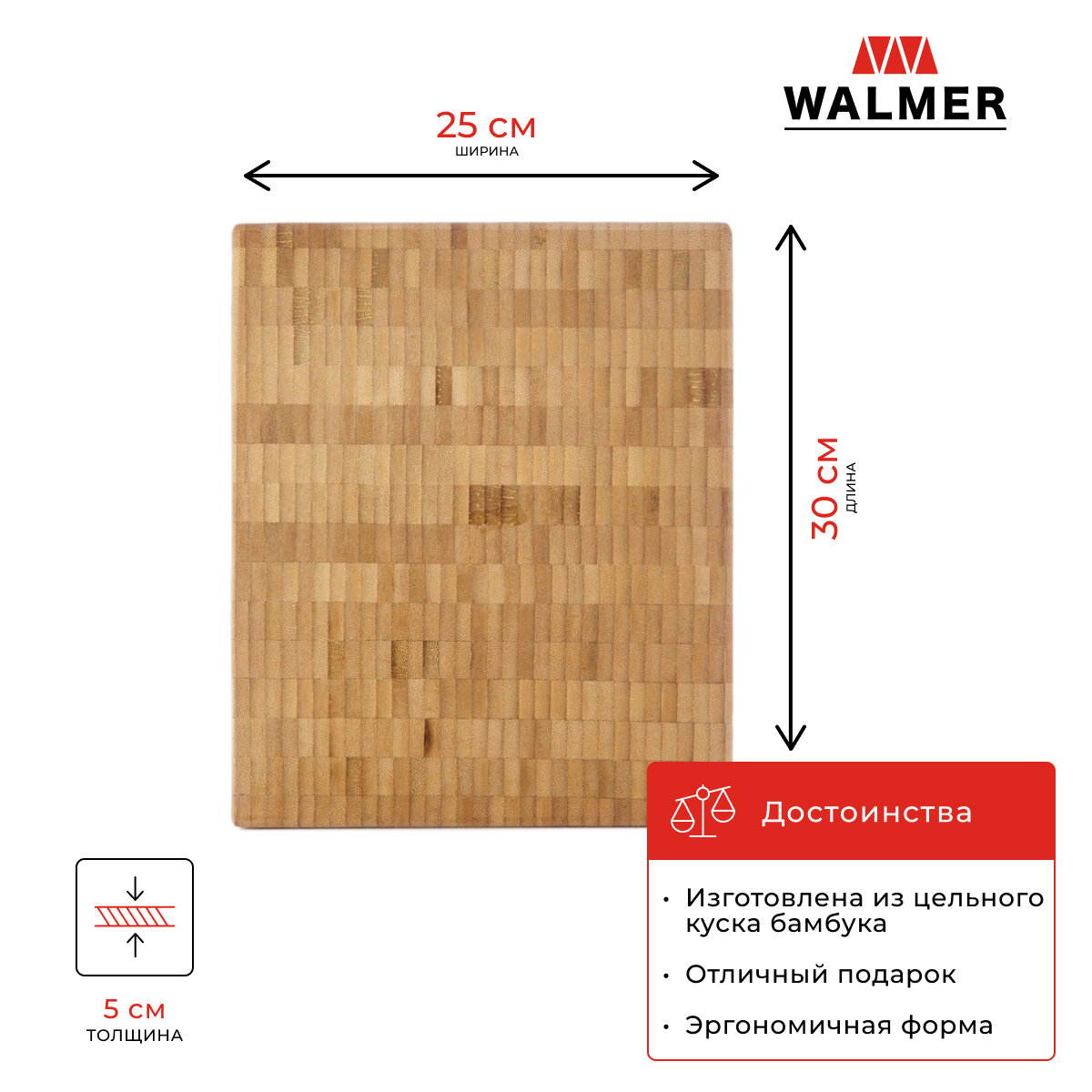 Доска разделочная торцевая из бамбука Walmer Chef 30х25 см, цвет светлое дерево интересное: