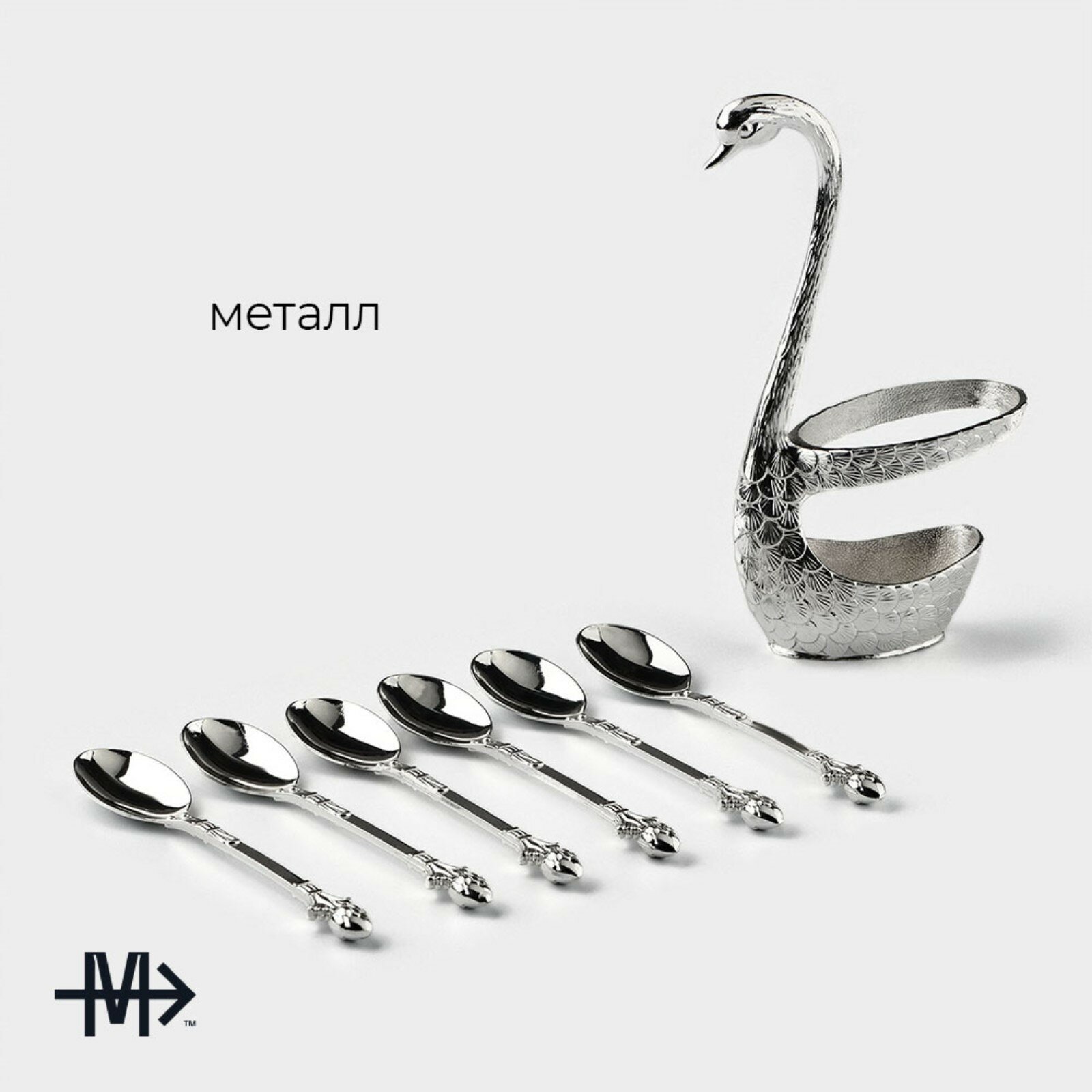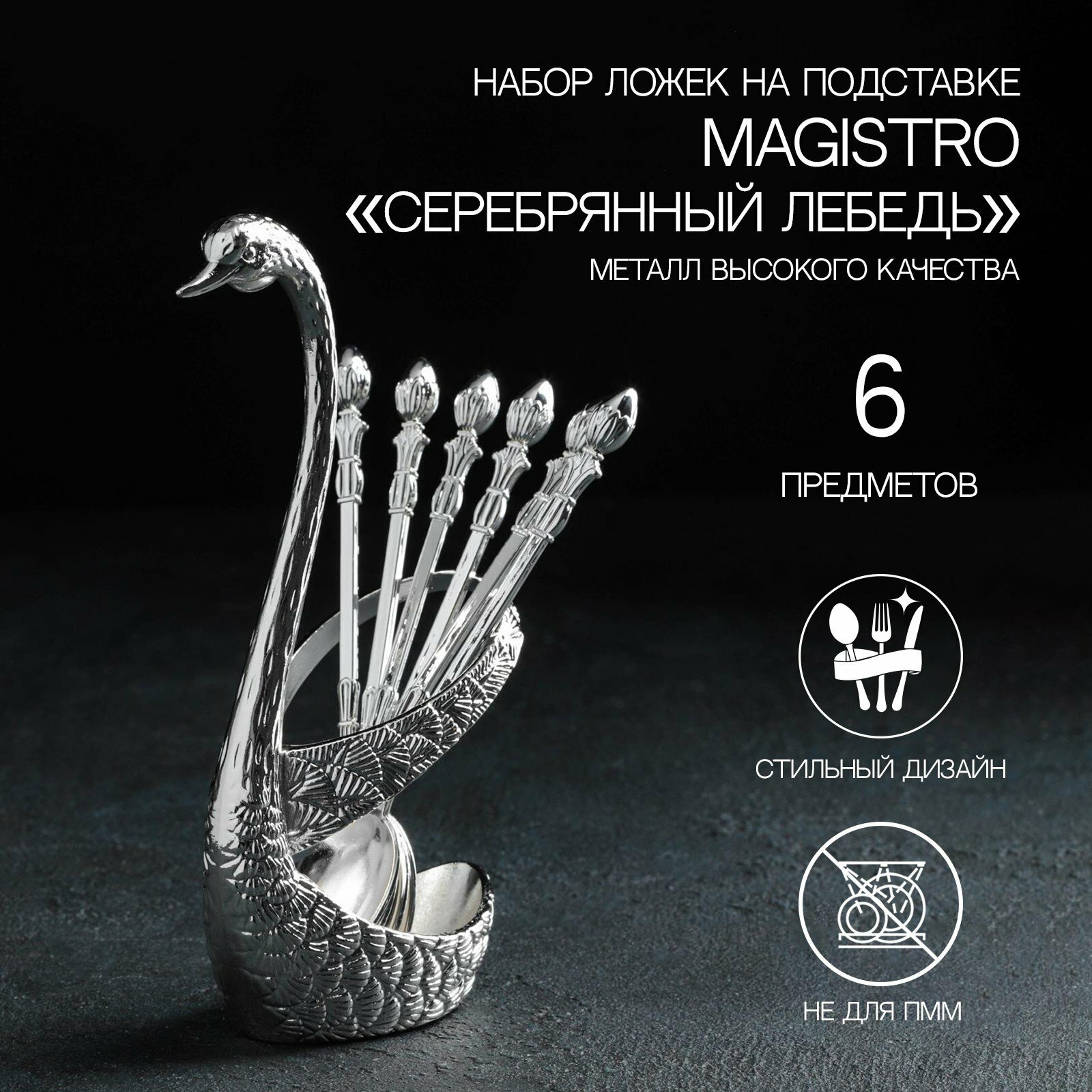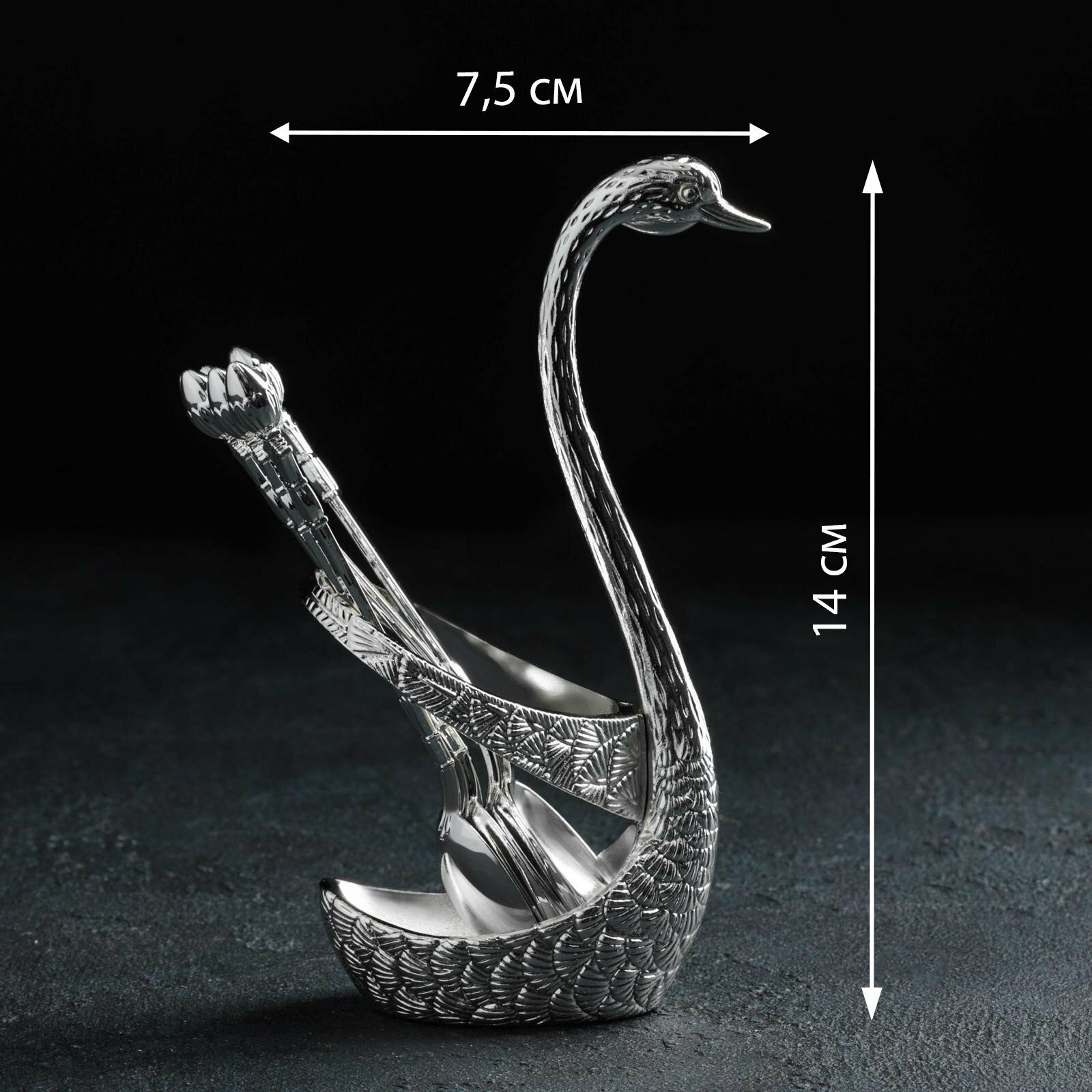 Набор ложек на подставке Magistro «Серебряный лебедь», 7,5×5×14 см, цвет серебряный интересное:
