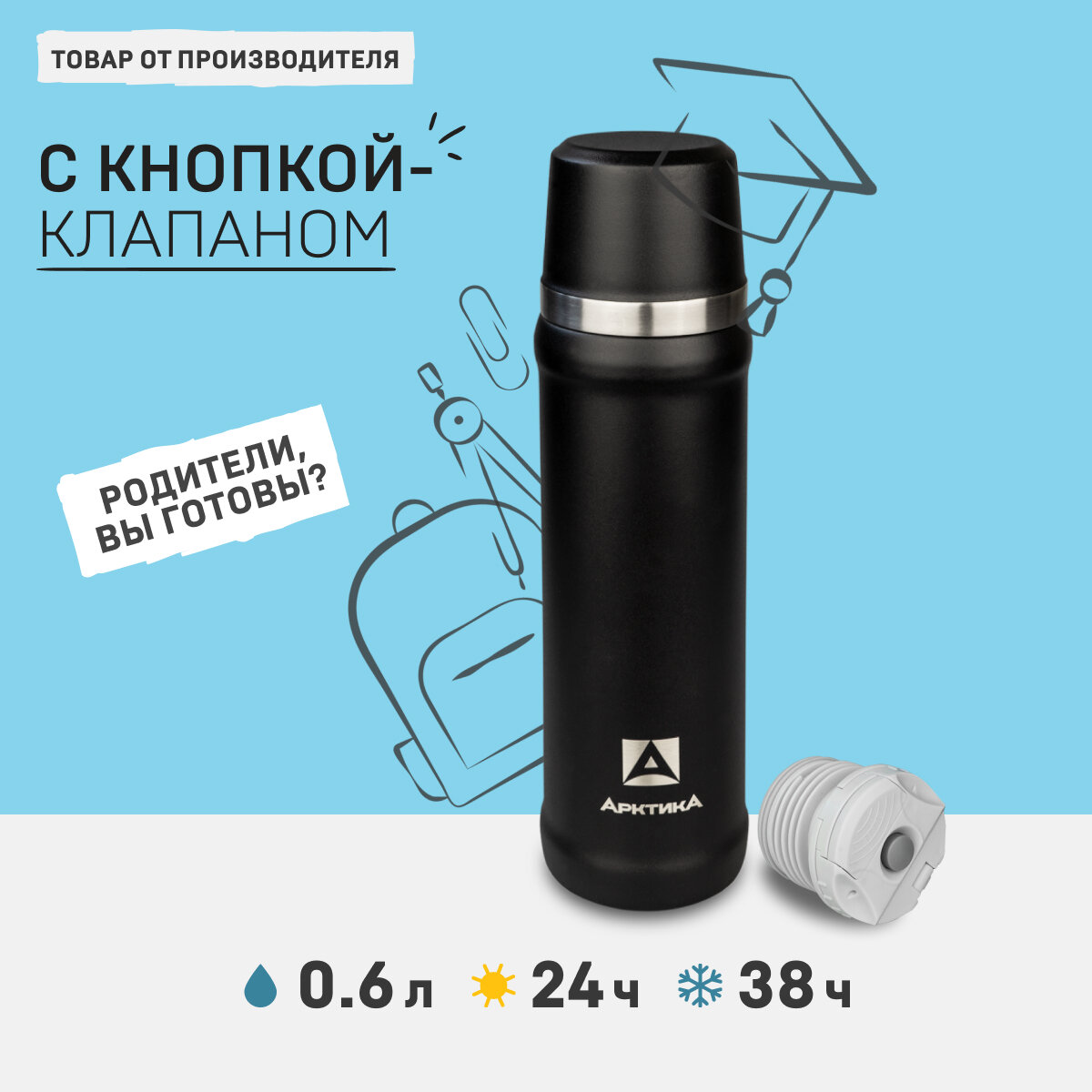 Термос Арктика 111-600 черный пробка с кнопкой