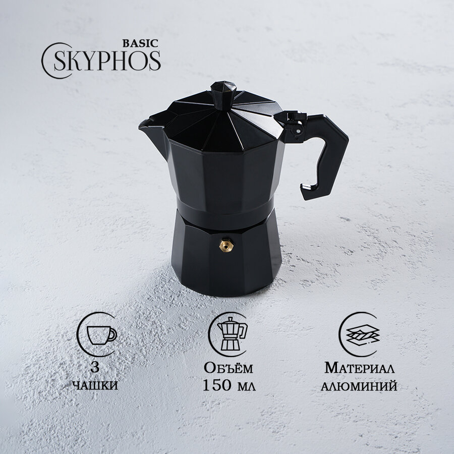 Купить Кофеварка гейзерная Magistro Alum black, на 3 чашки, 150 мл (арт. 6033394)