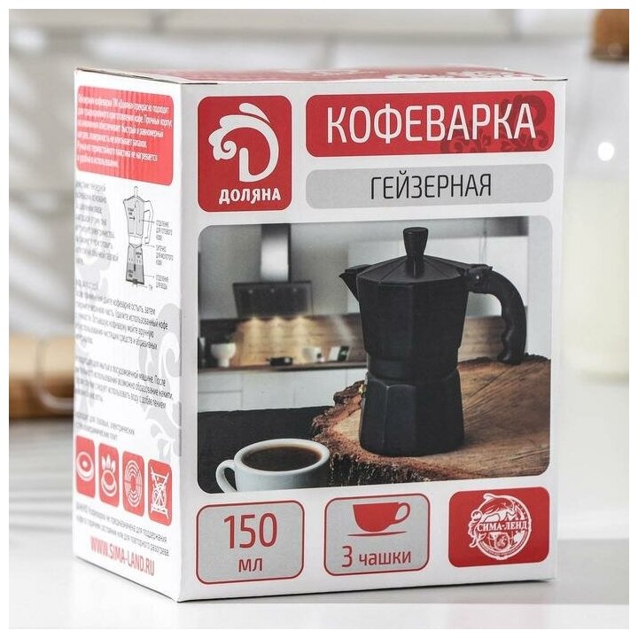 Кофеварка гейзерная Magistro Alum black, на 3 чашки, 150 мл (арт. 6033394) интересное: