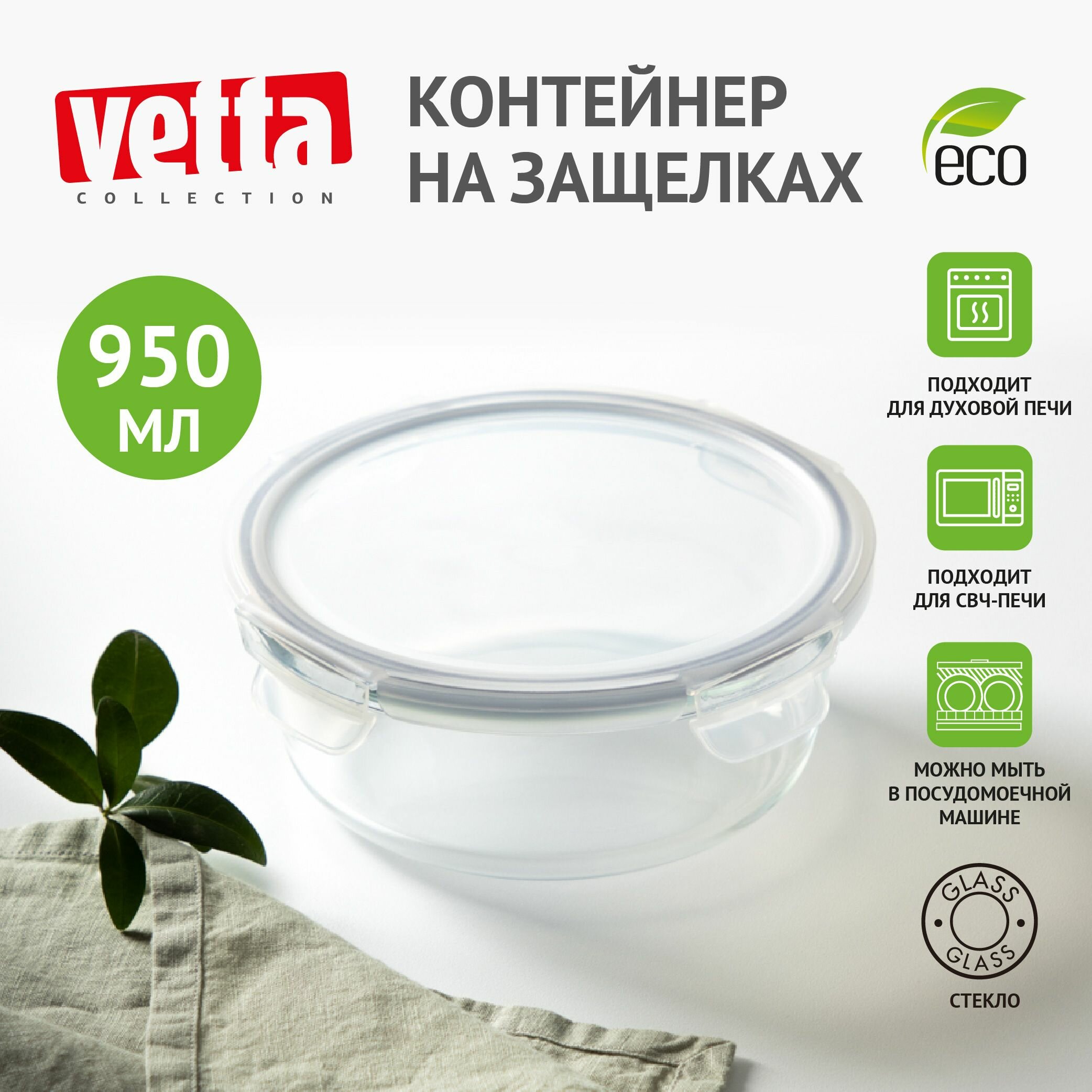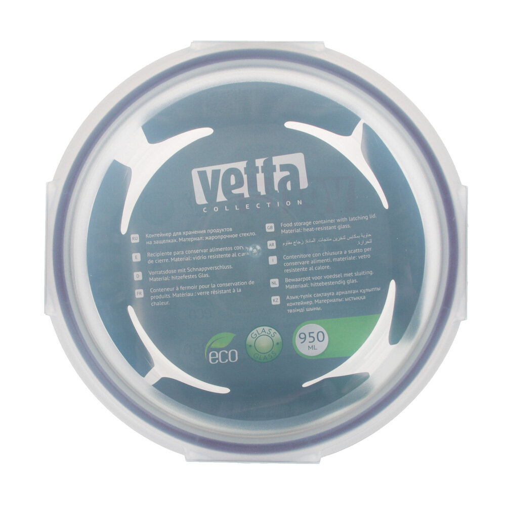Контейнер для продуктов на защелках VETTA 950мл круглый, жаропрочное стекло