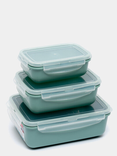 Набор герметичных контейнеров для еды 3 шт (0.4,0.8,1.4 л) IDEA, Фисташковый интересное: