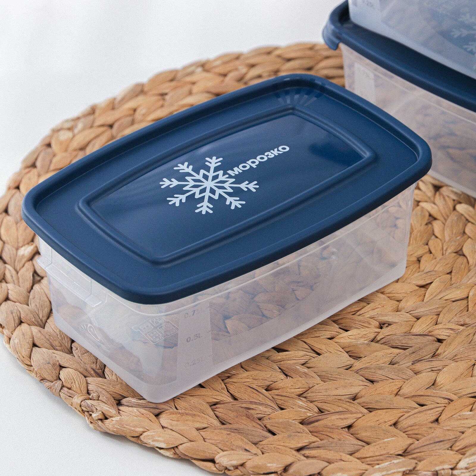 Набор прямоугольных контейнеров для замораживания продуктов «Морозко», 1 л , 3 шт, цвет микс
