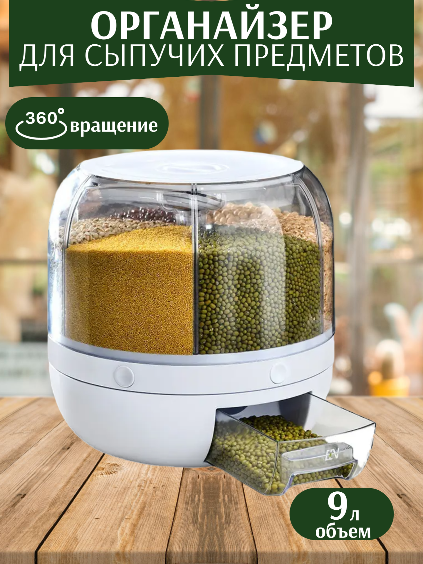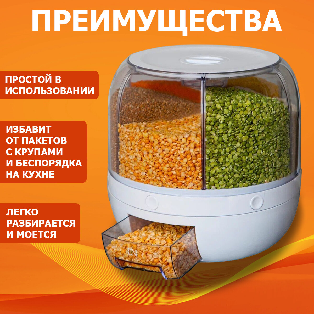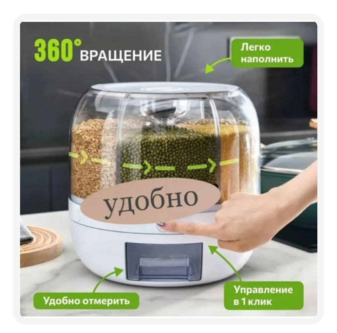 Диспенсер для круп и сыпучих продуктов, вращающийся, с дозатором 4литров