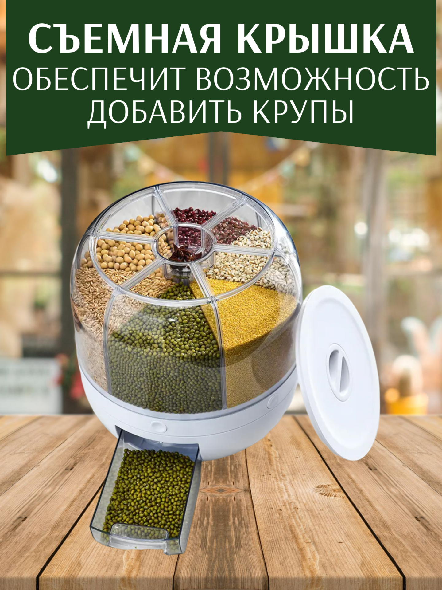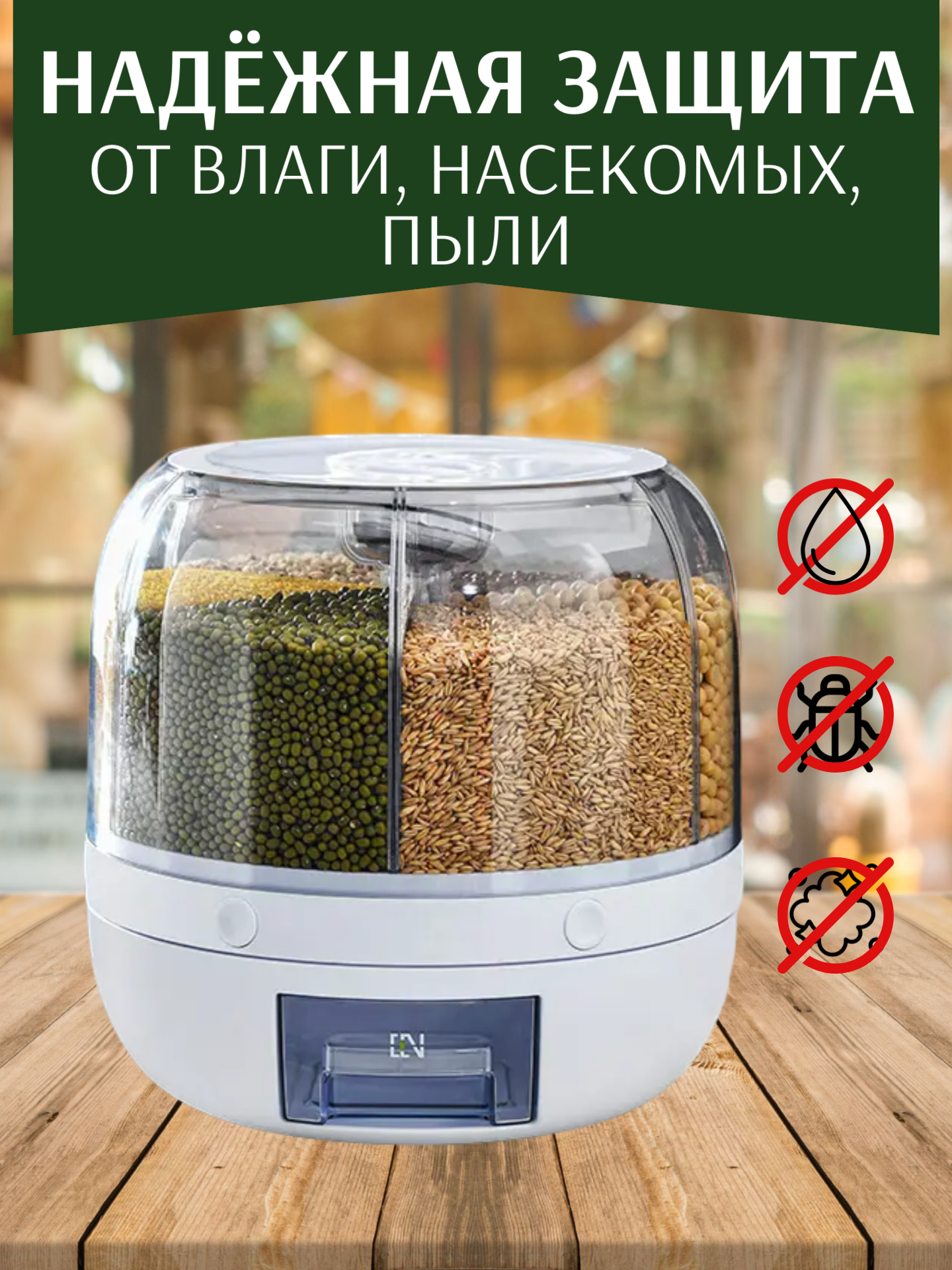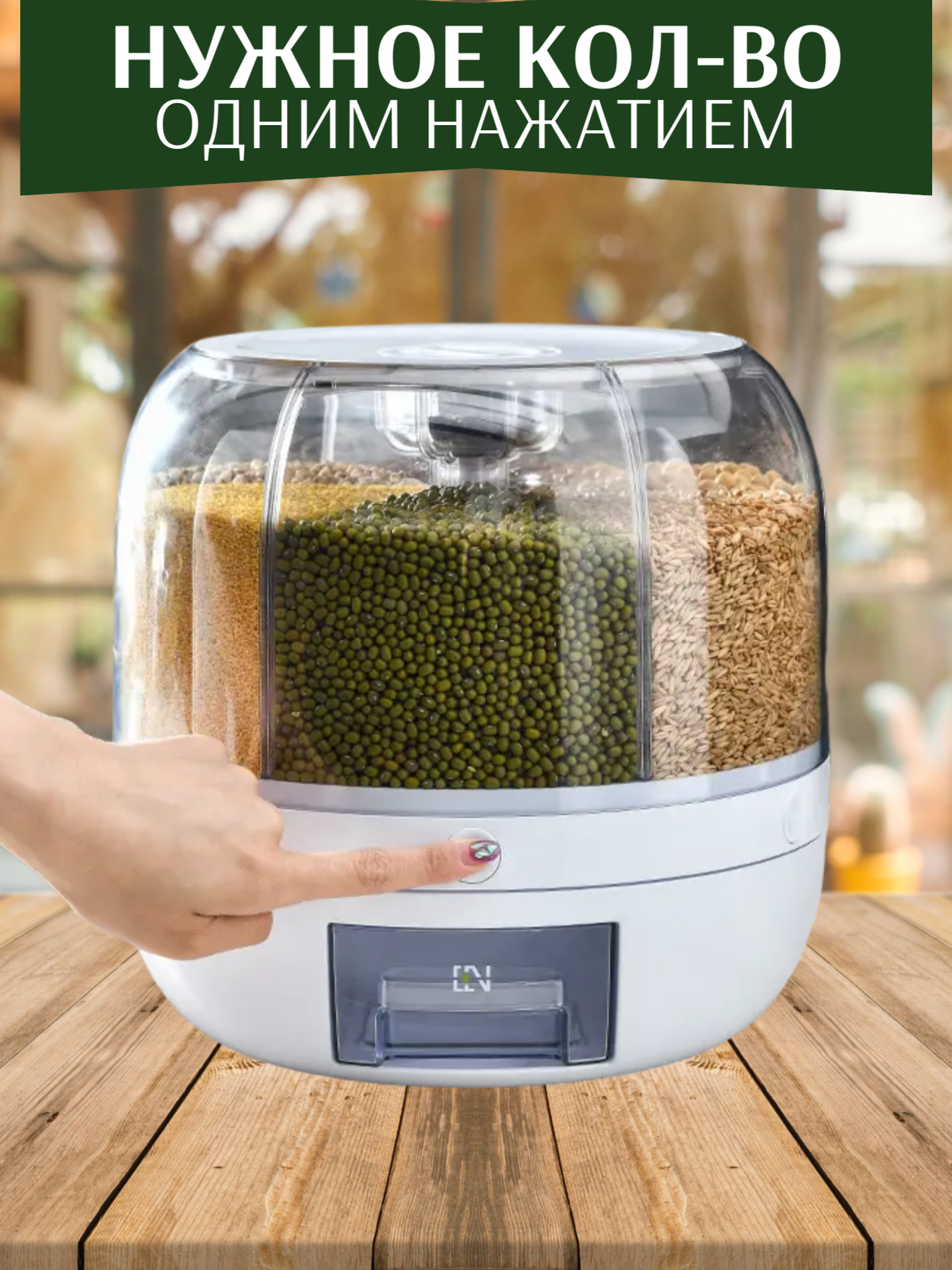Диспенсер для круп и сыпучих продуктов, вращающийся, с дозатором 4литров