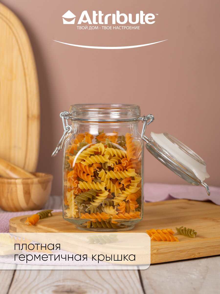 Банка для хранения продуктов с крышкой, 800мл, с бугельным замком, ATTRIBUTE JAR, стекло