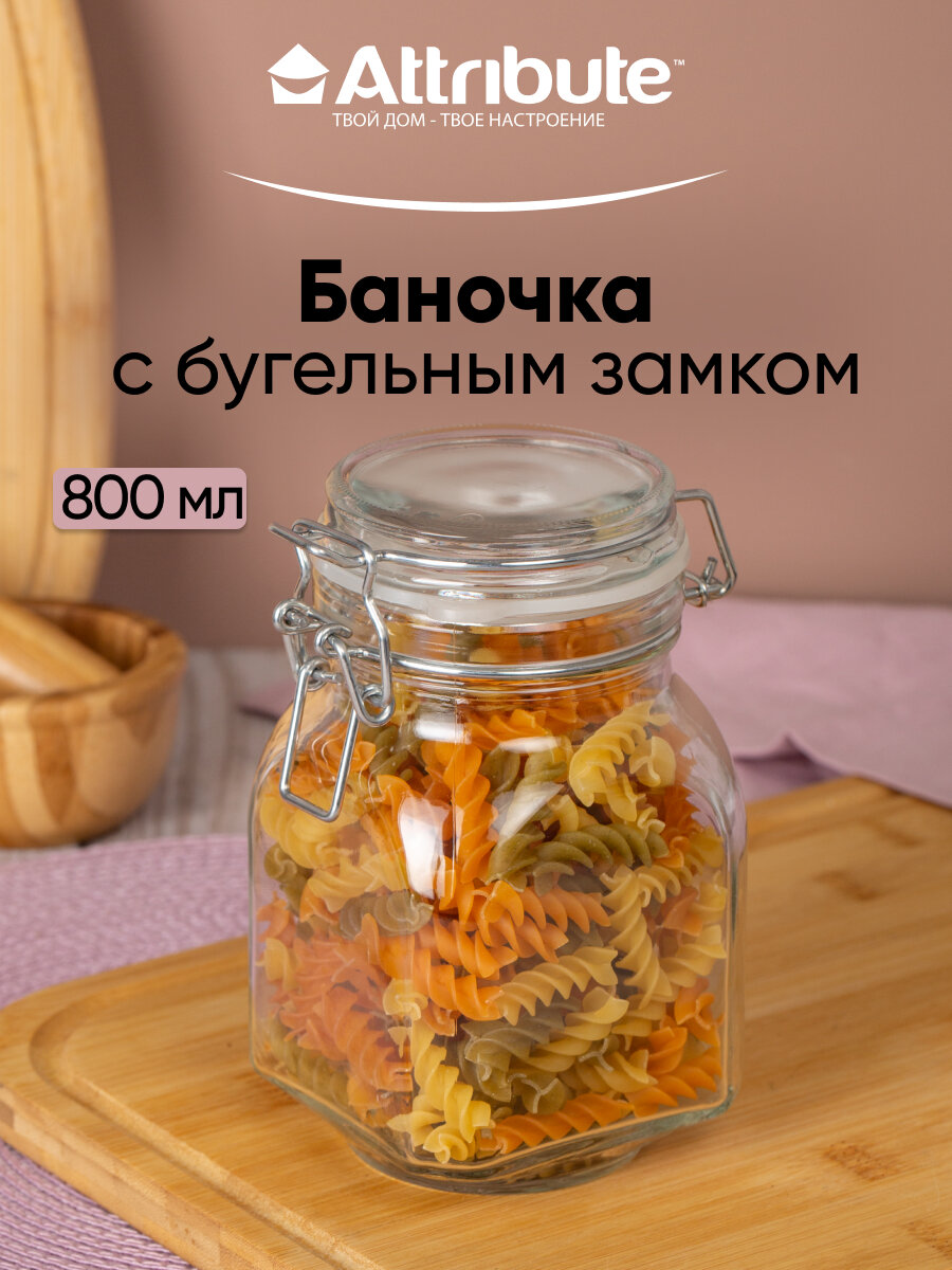 Банка 800мл с крышкой. бугельный замок,ATTRIBUTE JAR интересное: