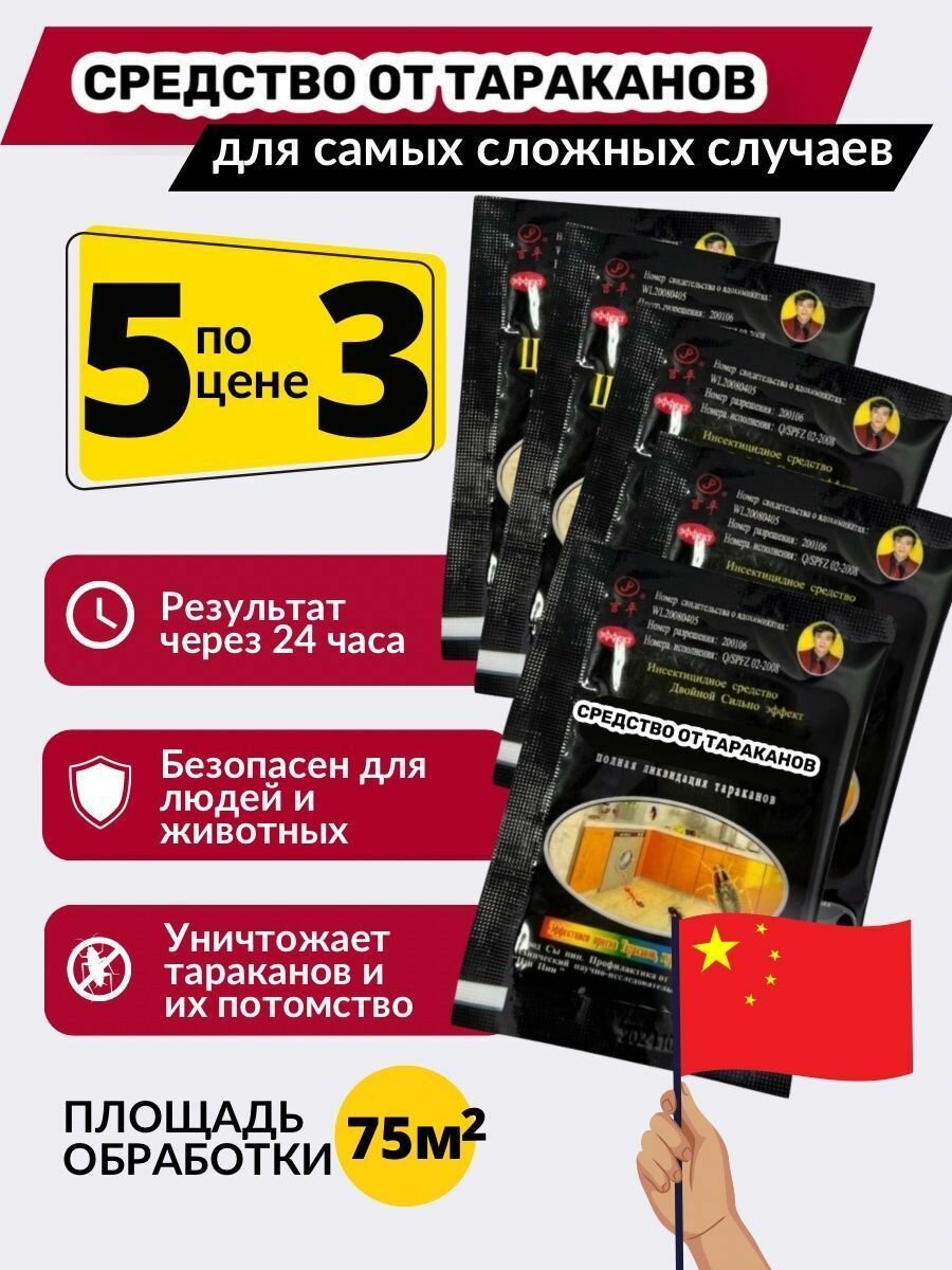 Цянь во дуань Средство от тараканов Комплект из 5шт