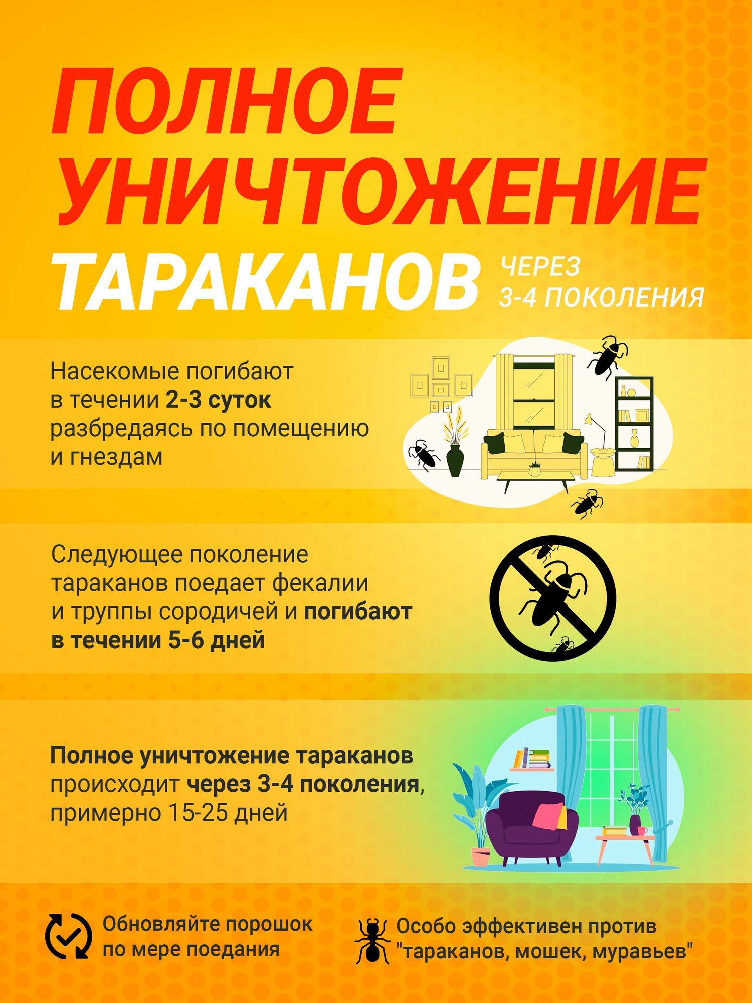 | Вид насекомых | блохи / клещи / клопы / мокрицы / моль / муравьи / мухи / пауки / ползающие насекомые / постельные клопы / тараканы |