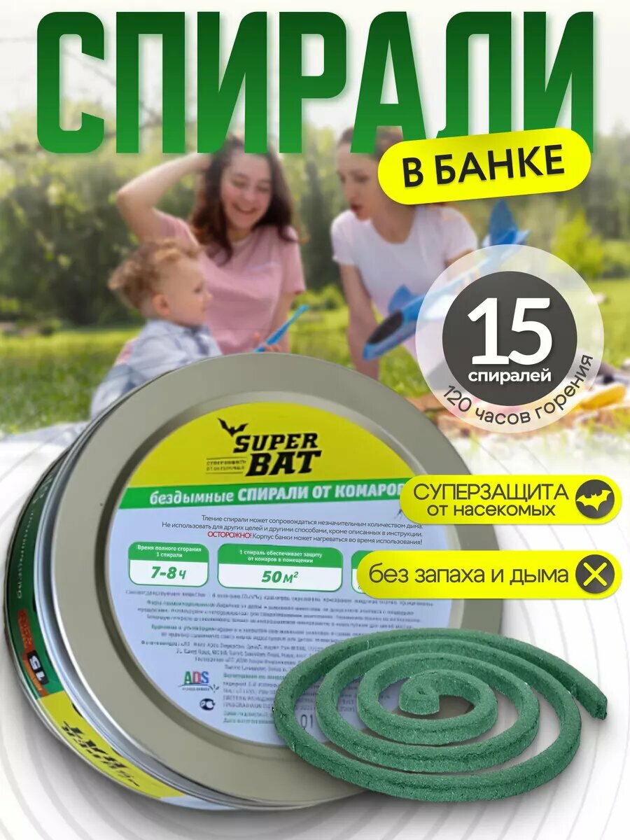 Спирали SuperBAT от комаров бездымные 15шт. в металической банке, зеленые интересное: