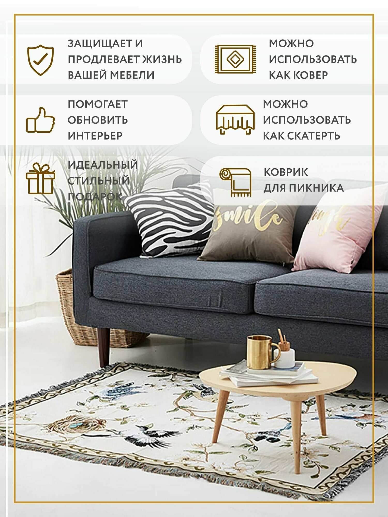Покрывало на кресло Sundelica "Птицы" 130х160, полиэстер/хлопок, двухсторонняя, подарочная