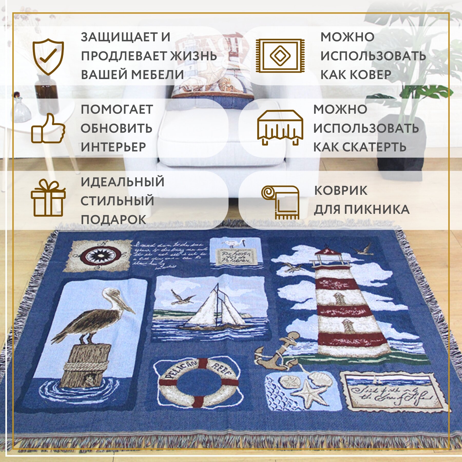 СохранитьПокрывало, накидка на кресло Sundelica 130х160 см "Морская тема" интересное: