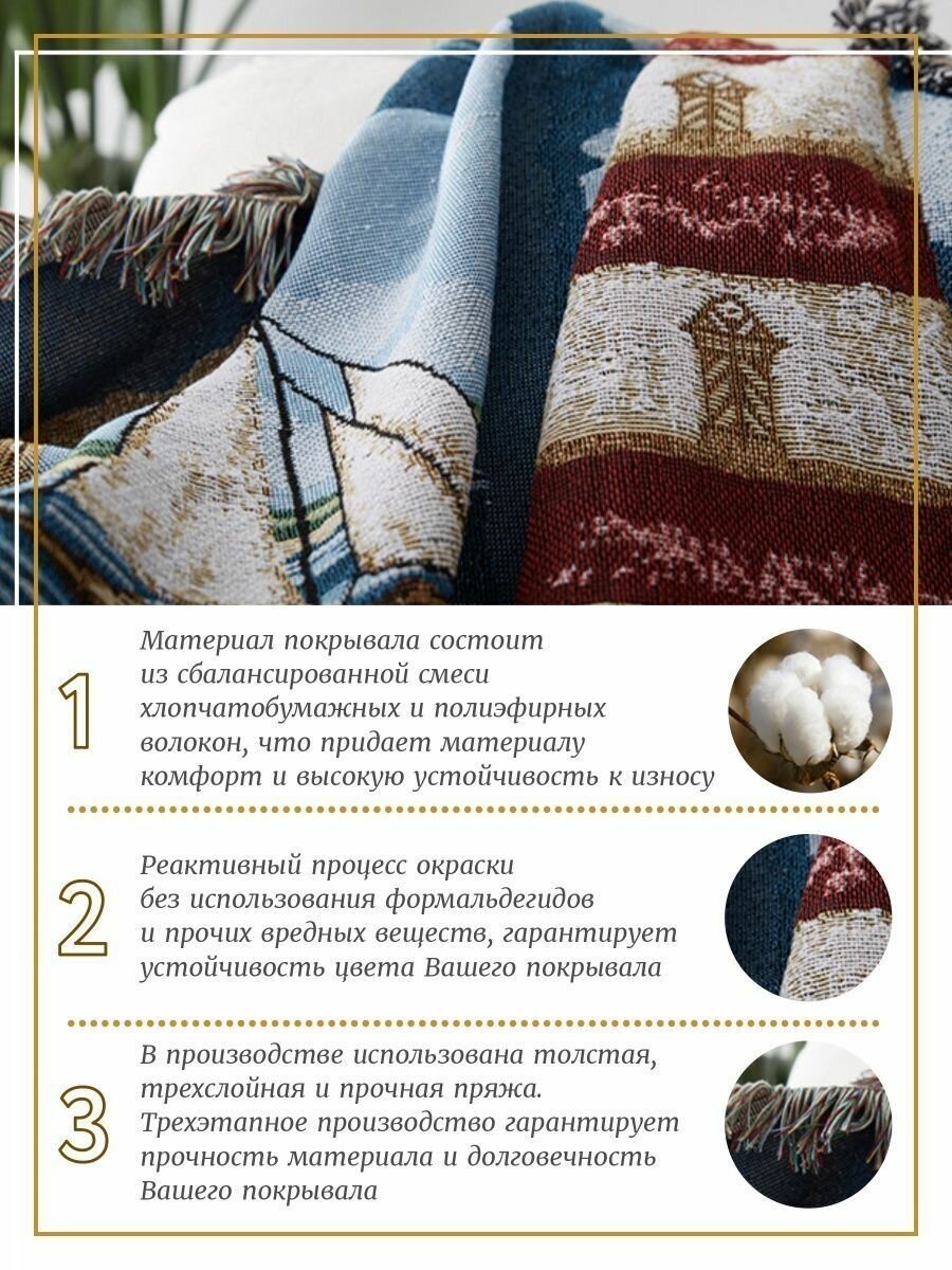 Покрывало на кресло Sundelica "Птицы" 130х160, полиэстер/хлопок, двухсторонняя, подарочная