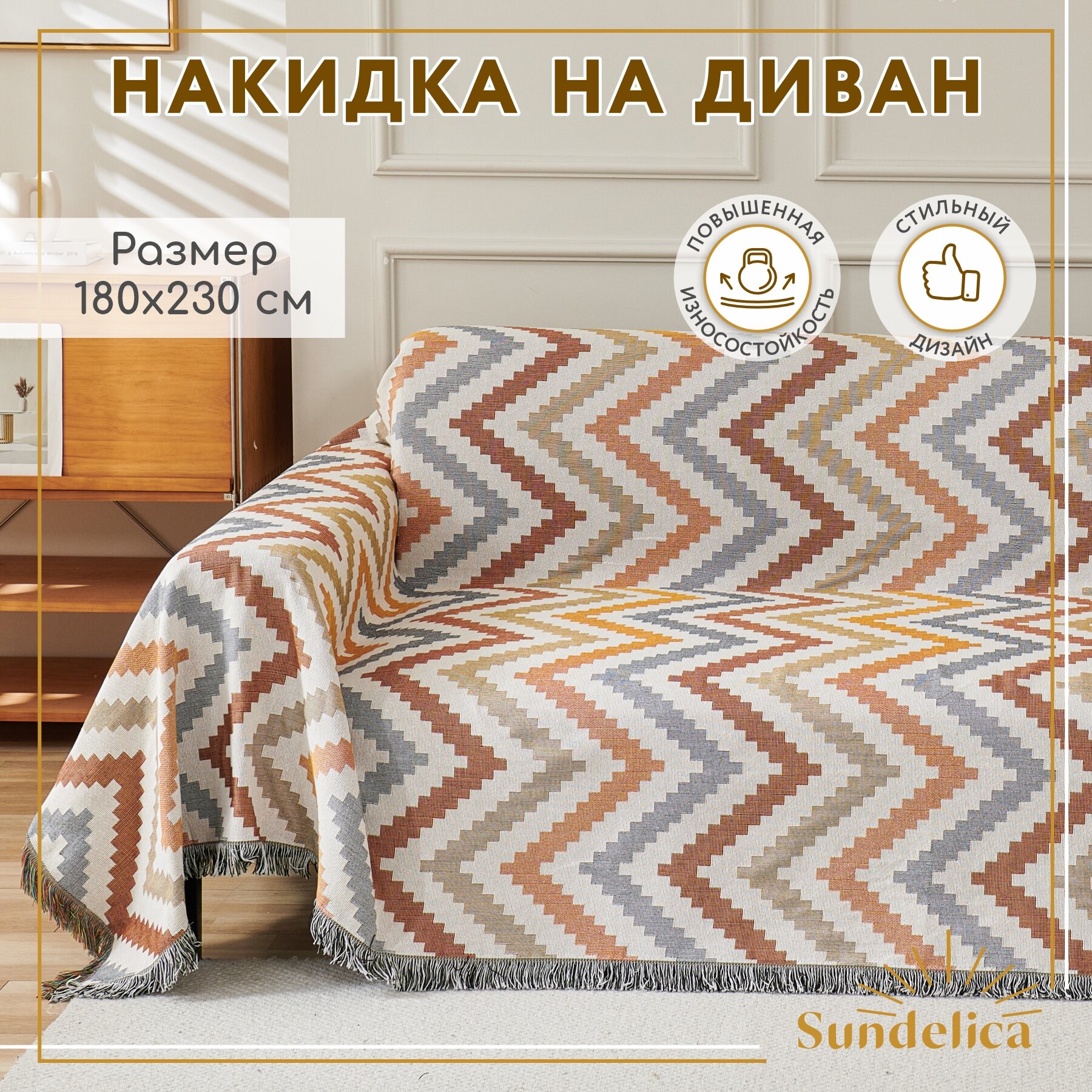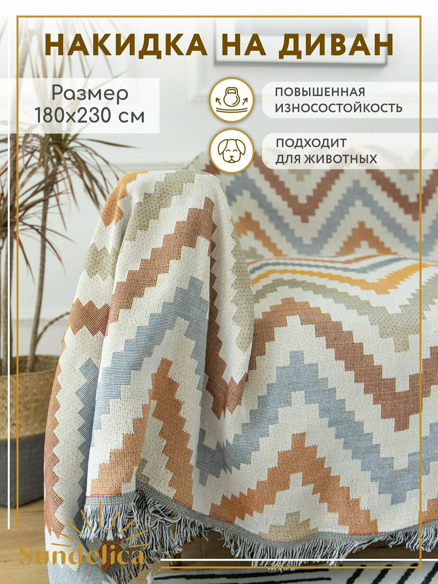 Купить Покрывало, накидка на диван Sundelica 180х230 см Зигзаг