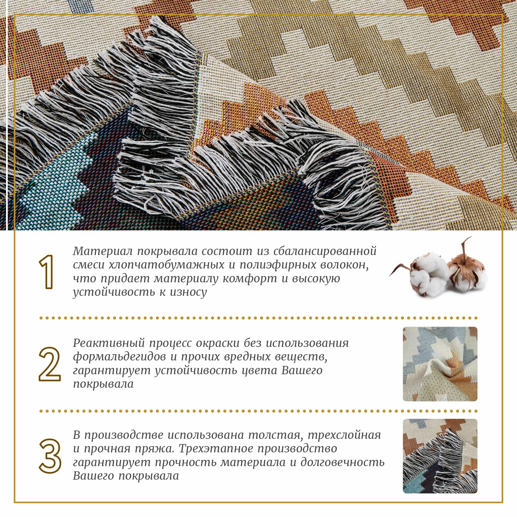 Покрывало Sundelica на диван, на кровать, на кресло, дизайн "Орнамент", размер 160x220 см, с бахромой