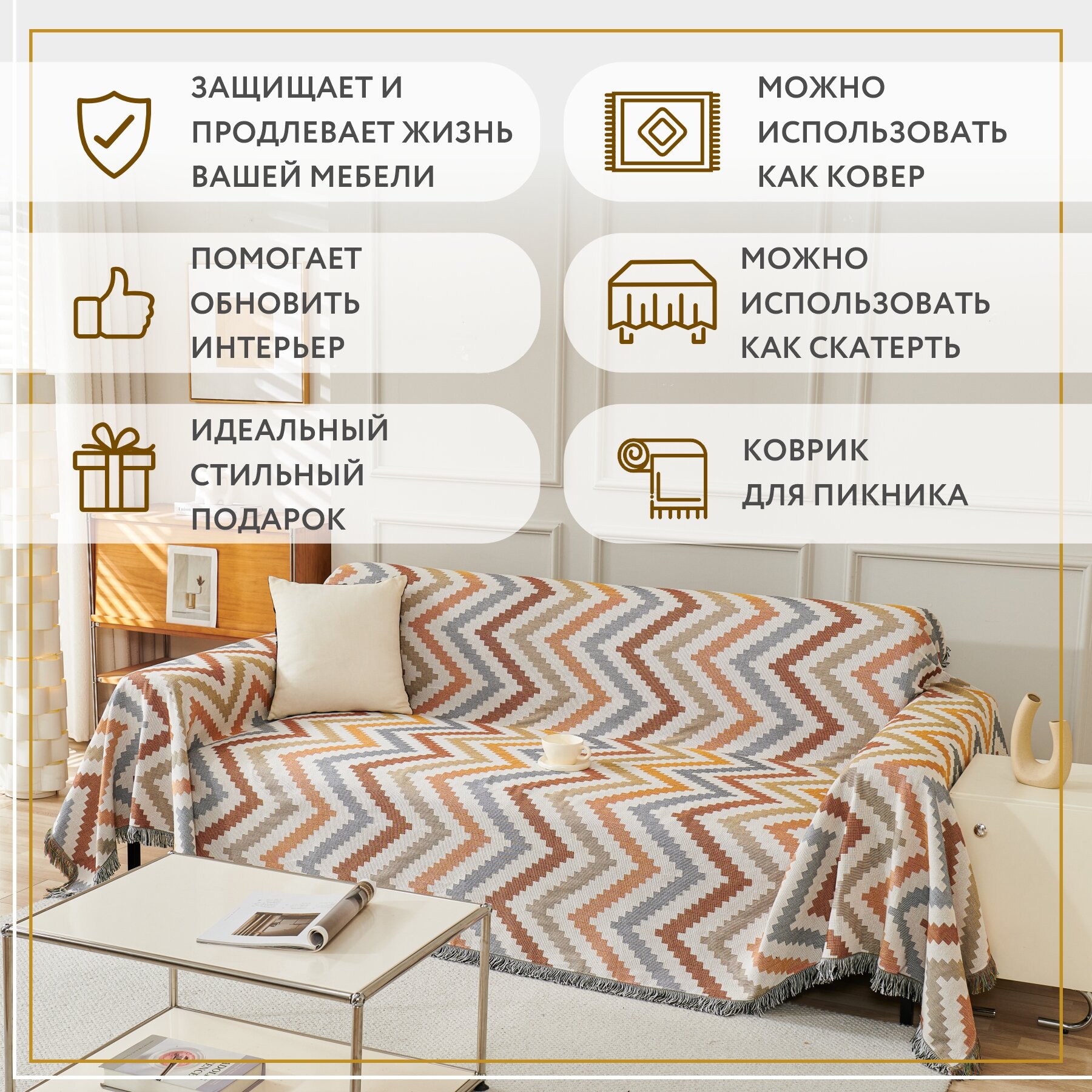 СохранитьПокрывало, накидка на диван Sundelica 180х230 см Зигзаг интересное: