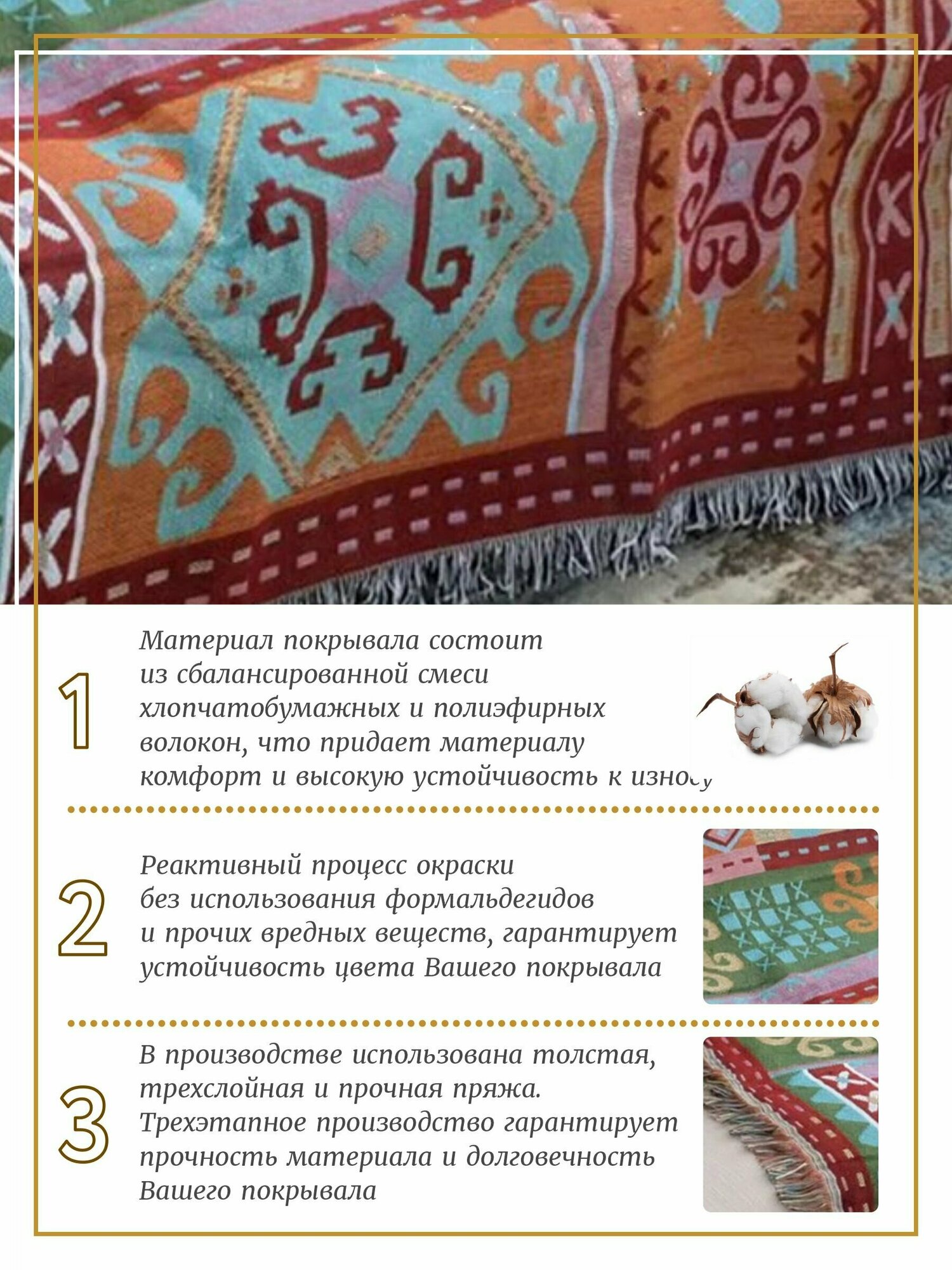Муслиновый плед Sundelica 200х230 "турецкий ковер" для дома и дачи, для дивана и для кровати