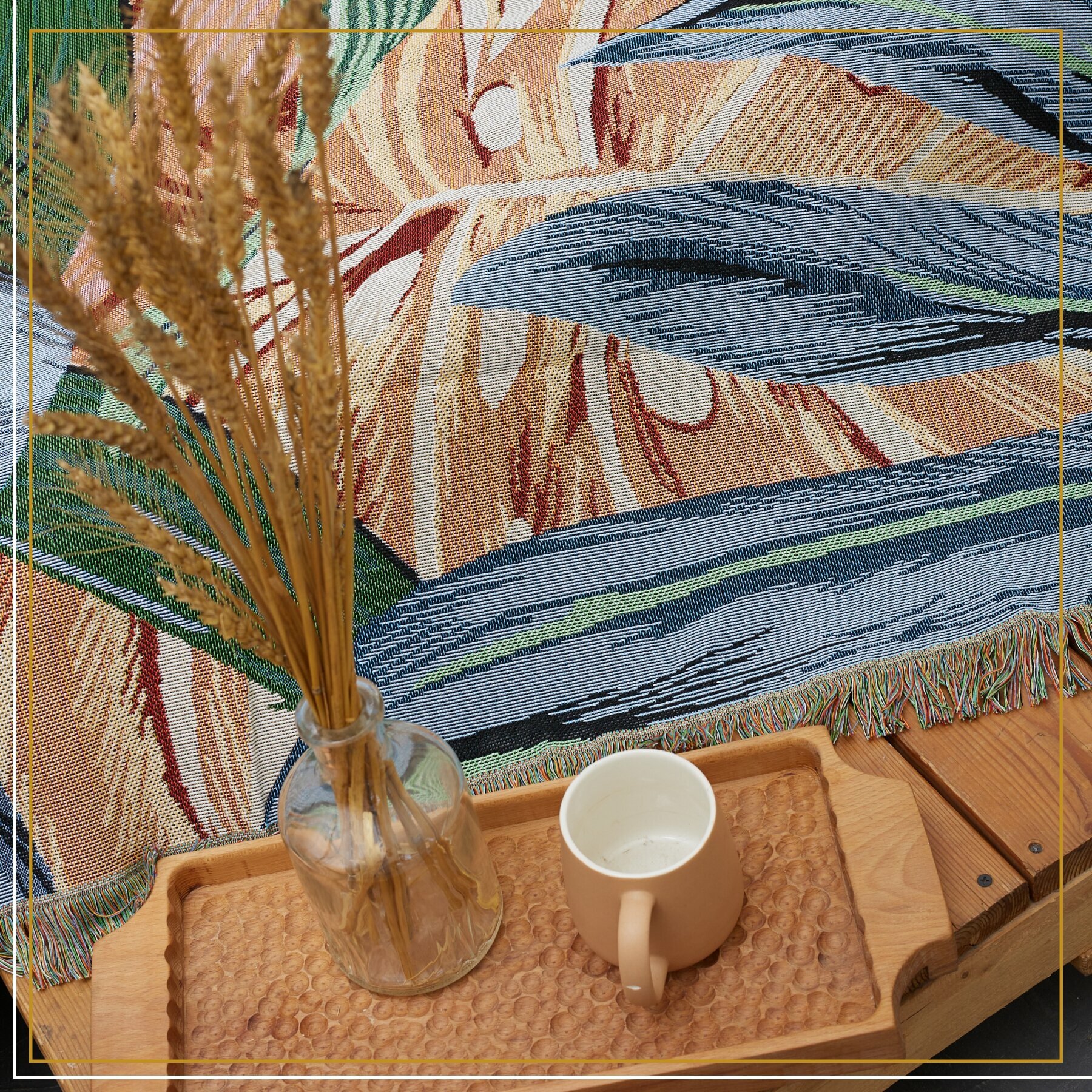 Покрывало Sundelica "Листья" 160х220 см, двухстороннее, хлопок/полиэстер, отделка бахромой