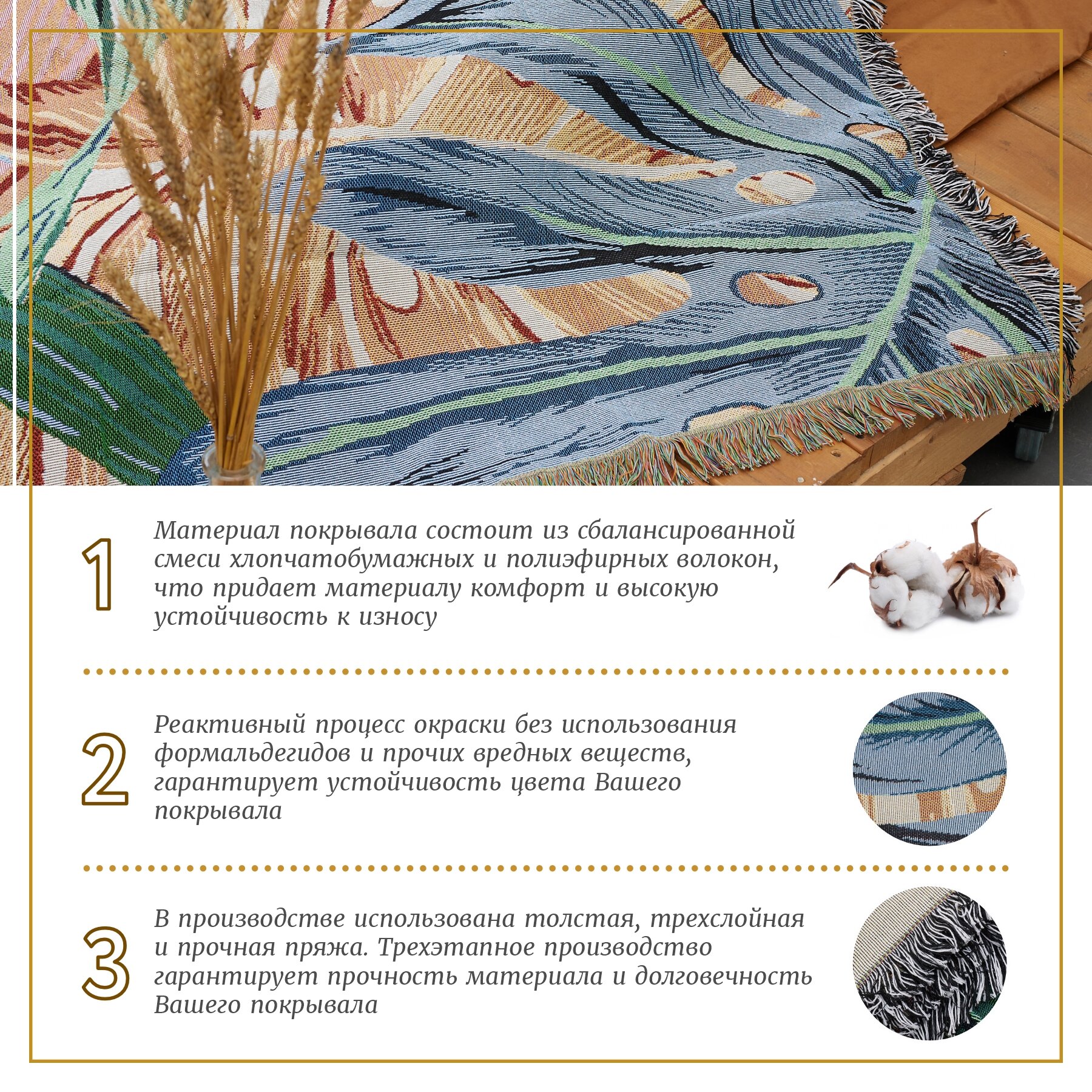 Покрывало на кресло Sundelica "Птицы" 130х160, полиэстер/хлопок, двухсторонняя, подарочная