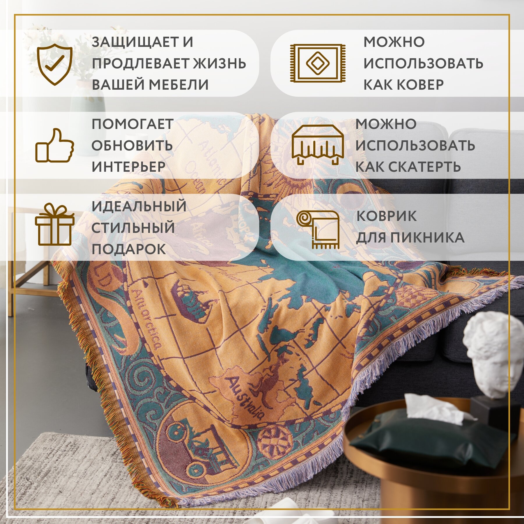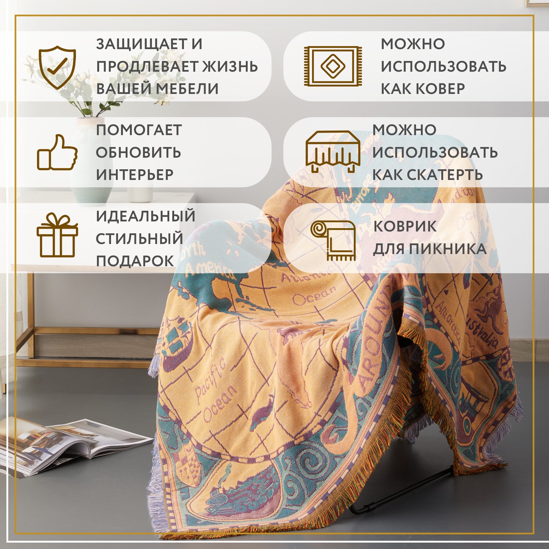 Покрывало, накидка на кресло Sundelica 130х180 см "Карта мира"
