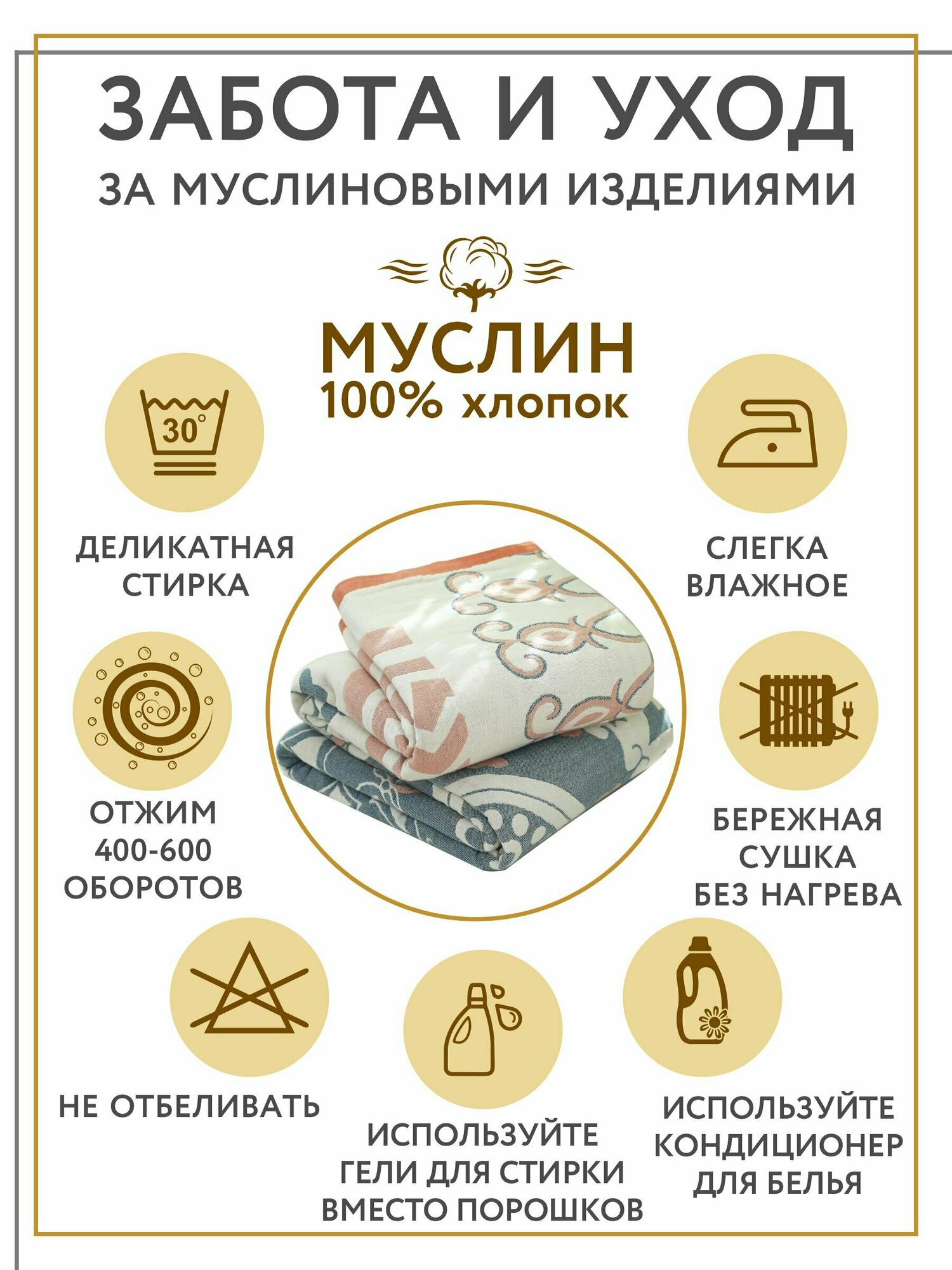 Покрывало на кровать Плед 200х230 "Орнамент" Хлопок Муслиновое одеяло