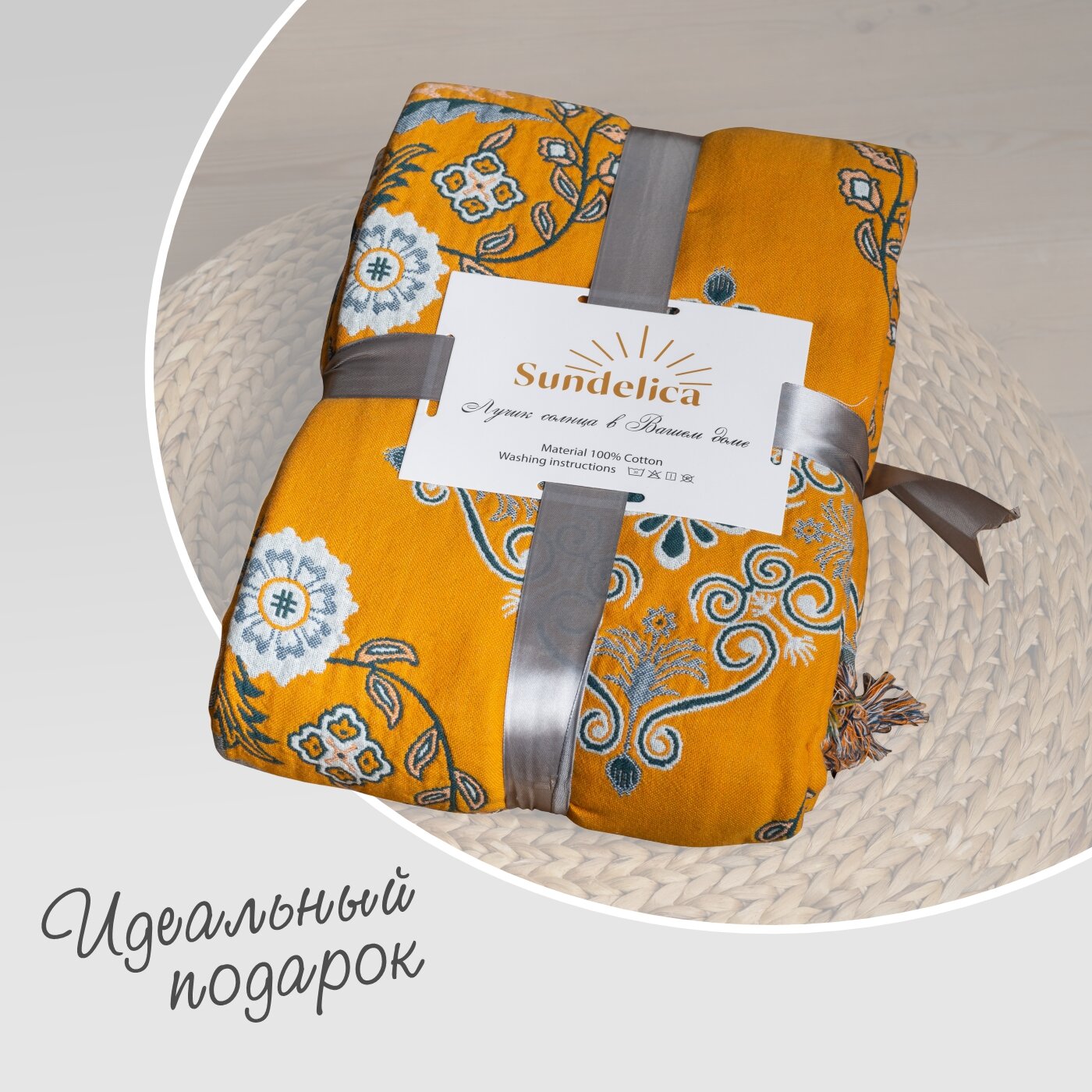 Покрывало на кровать Sundelica Плед 200х230 "Солнечный орнамент" Хлопок Муслиновое одеяло
