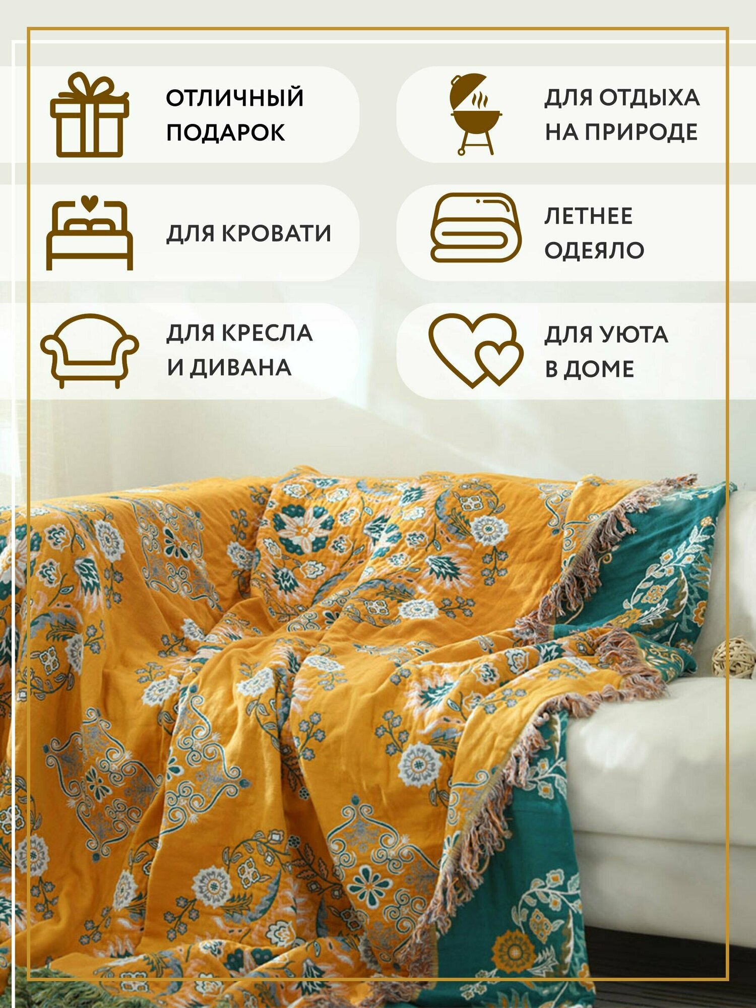 Купить Покрывало на кровать Sundelica Плед 200х230 "Желтый с бирюзой" Хлопок Муслиновое одеяло
