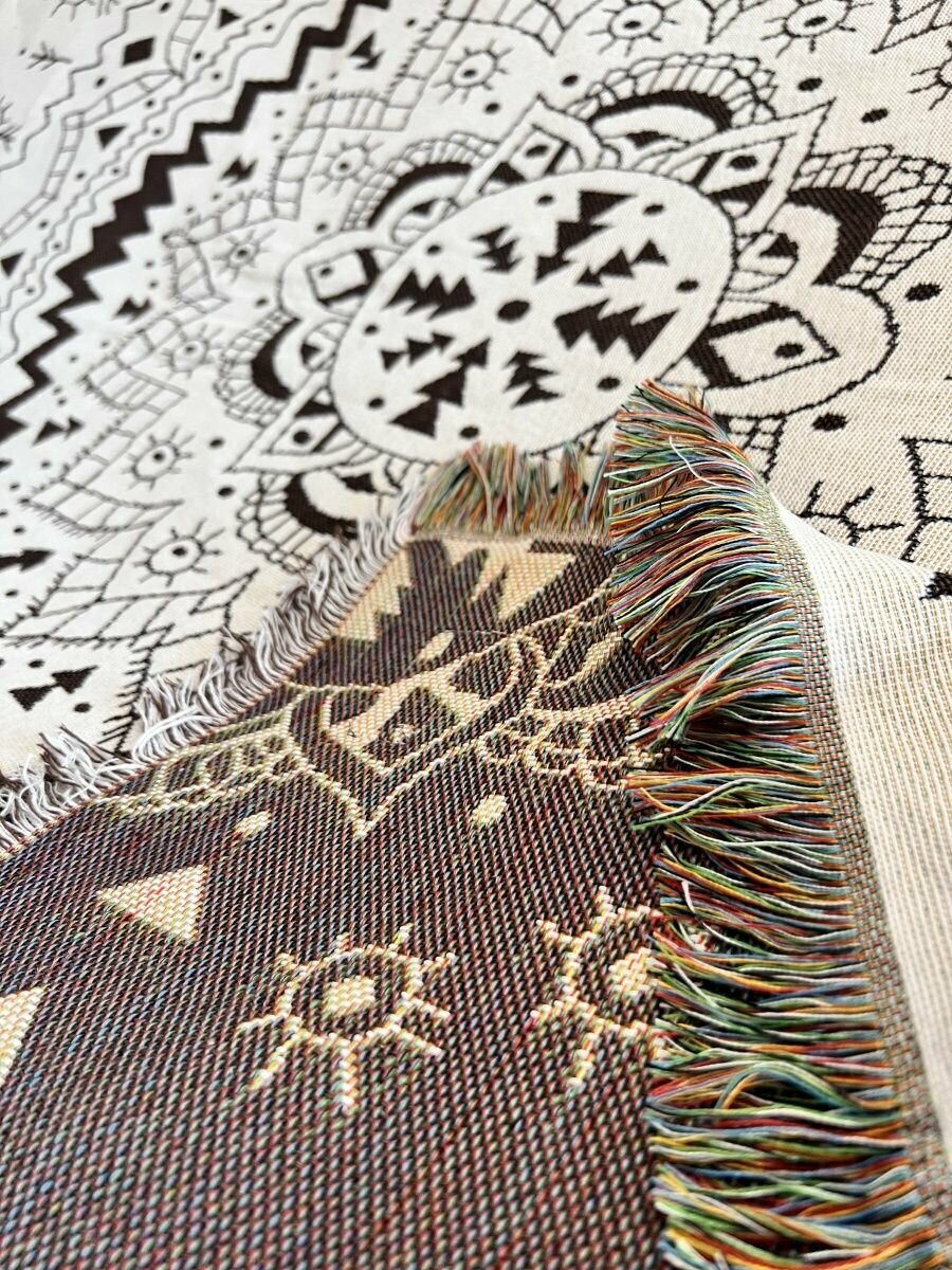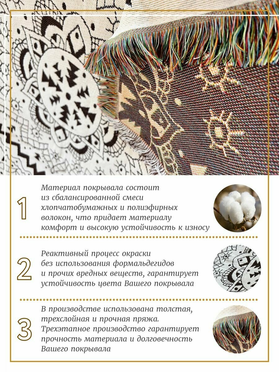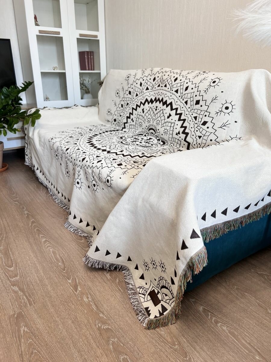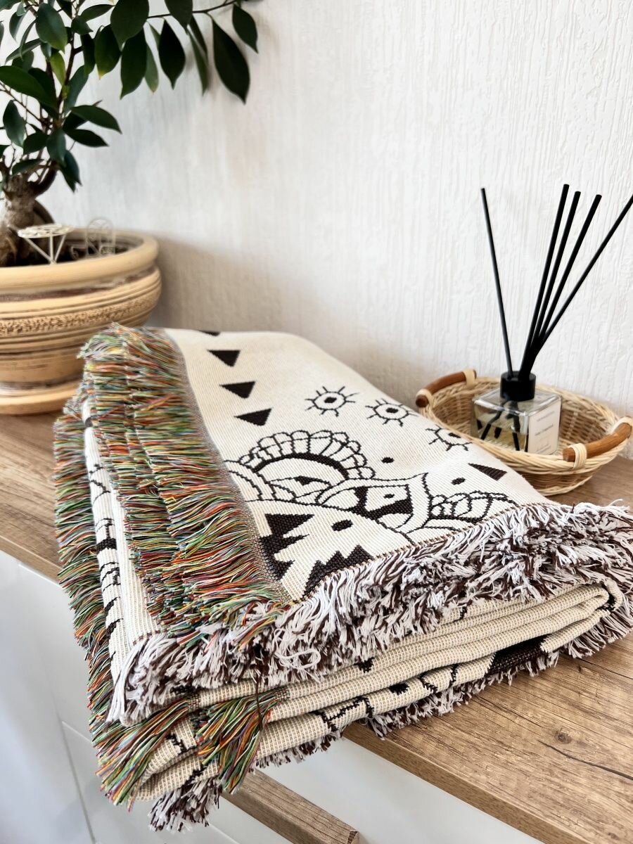 Покрывало Sundelica на диван, на кровать, на кресло, дизайн "Орнамент", размер 160x220 см, с бахромой