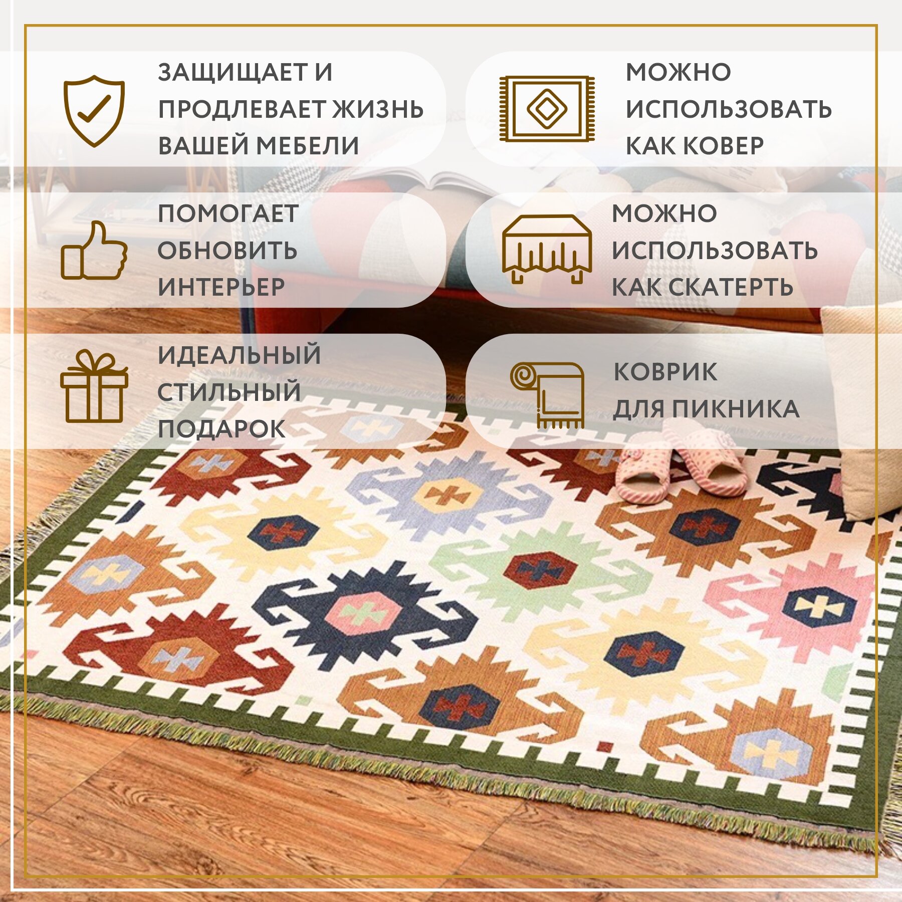 | Особенности | двухстороннее / для пикника / подарочная упаковка |