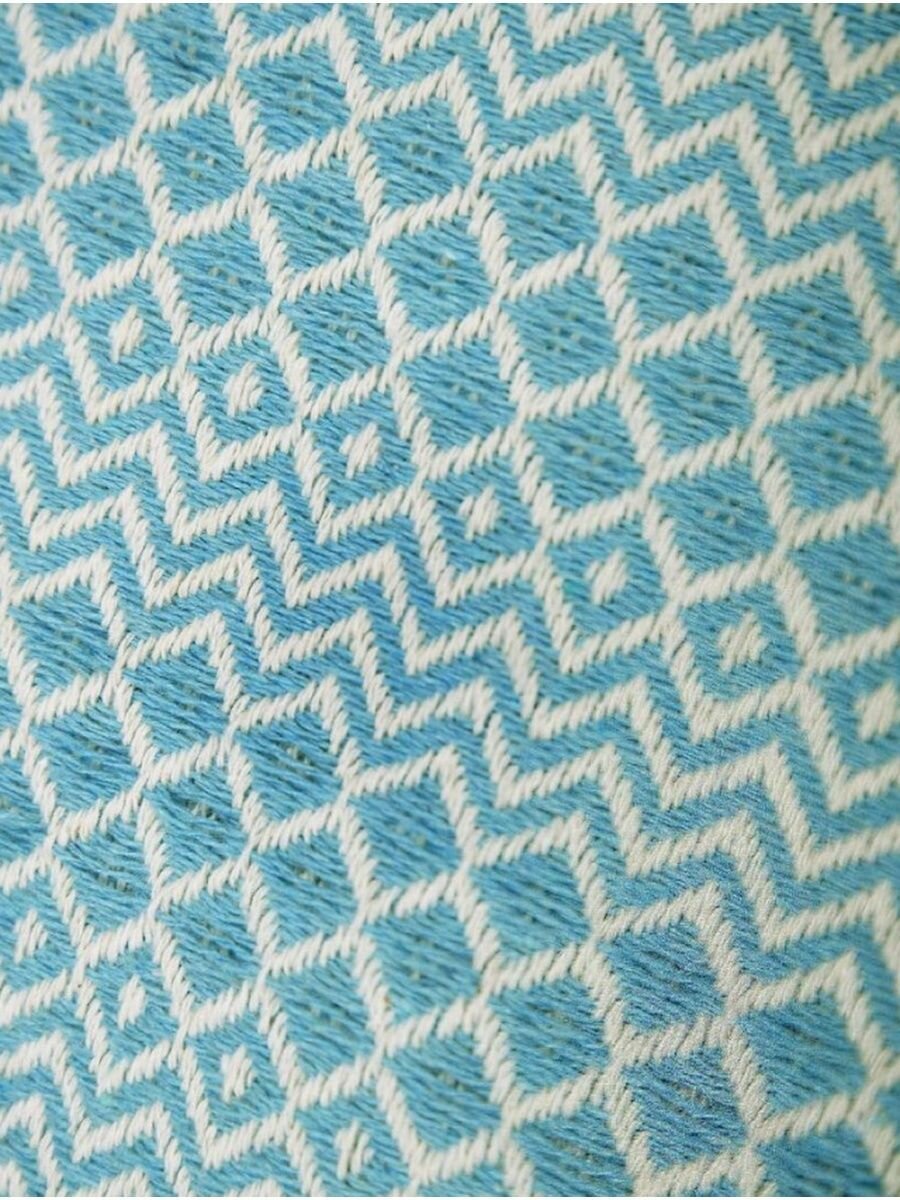 Плед на диван хлопок с бахромой Venera 145х200 см, Голубой с узорами
