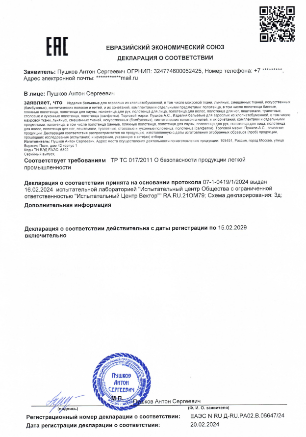 | Количество банных полотенец | 2 шт. |