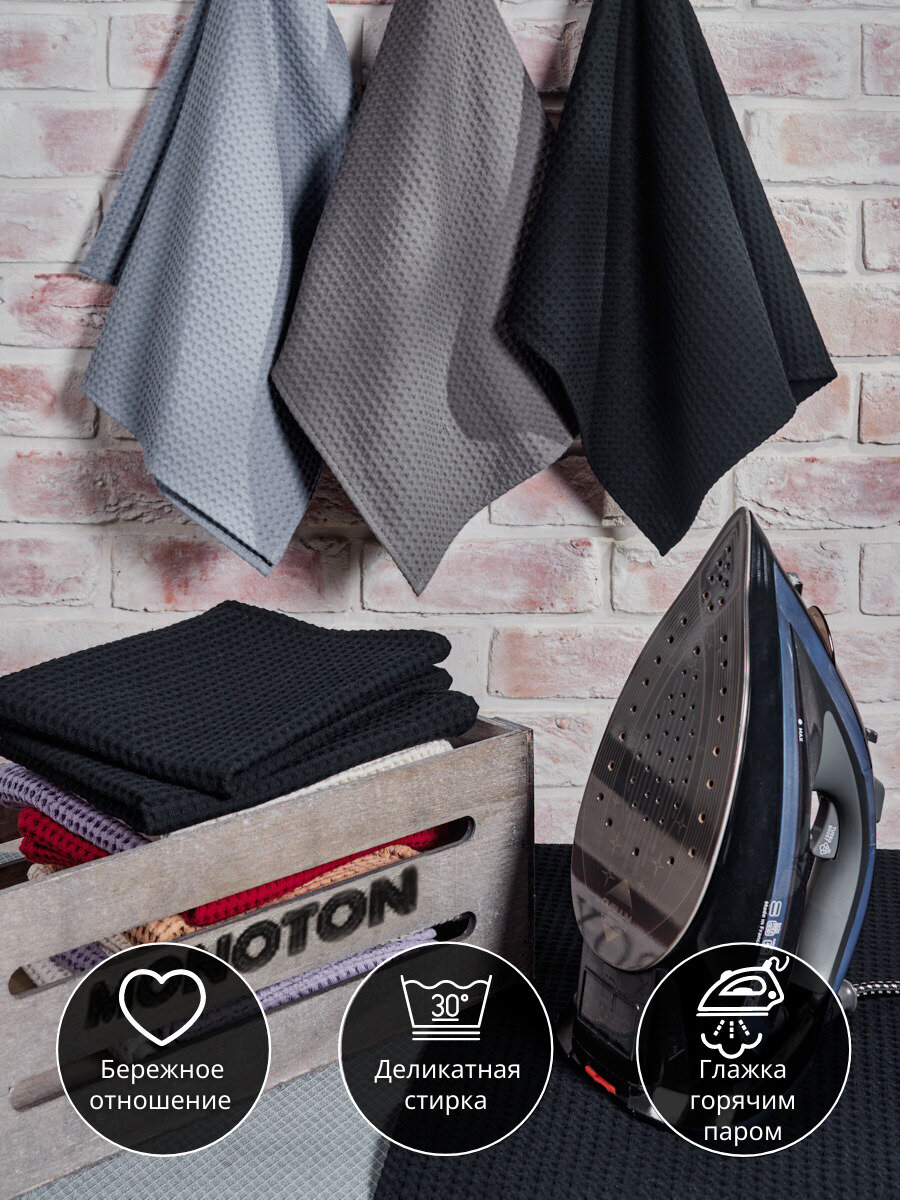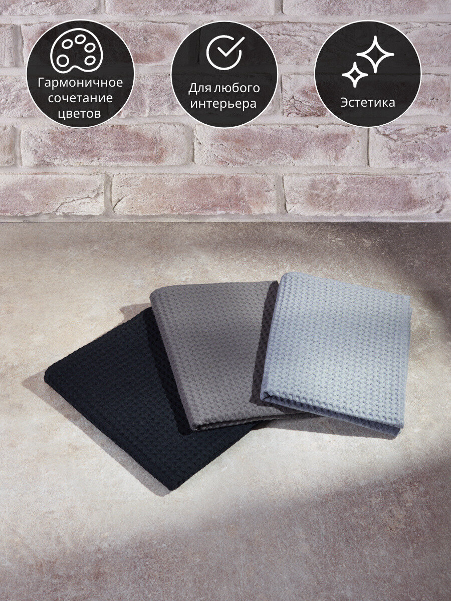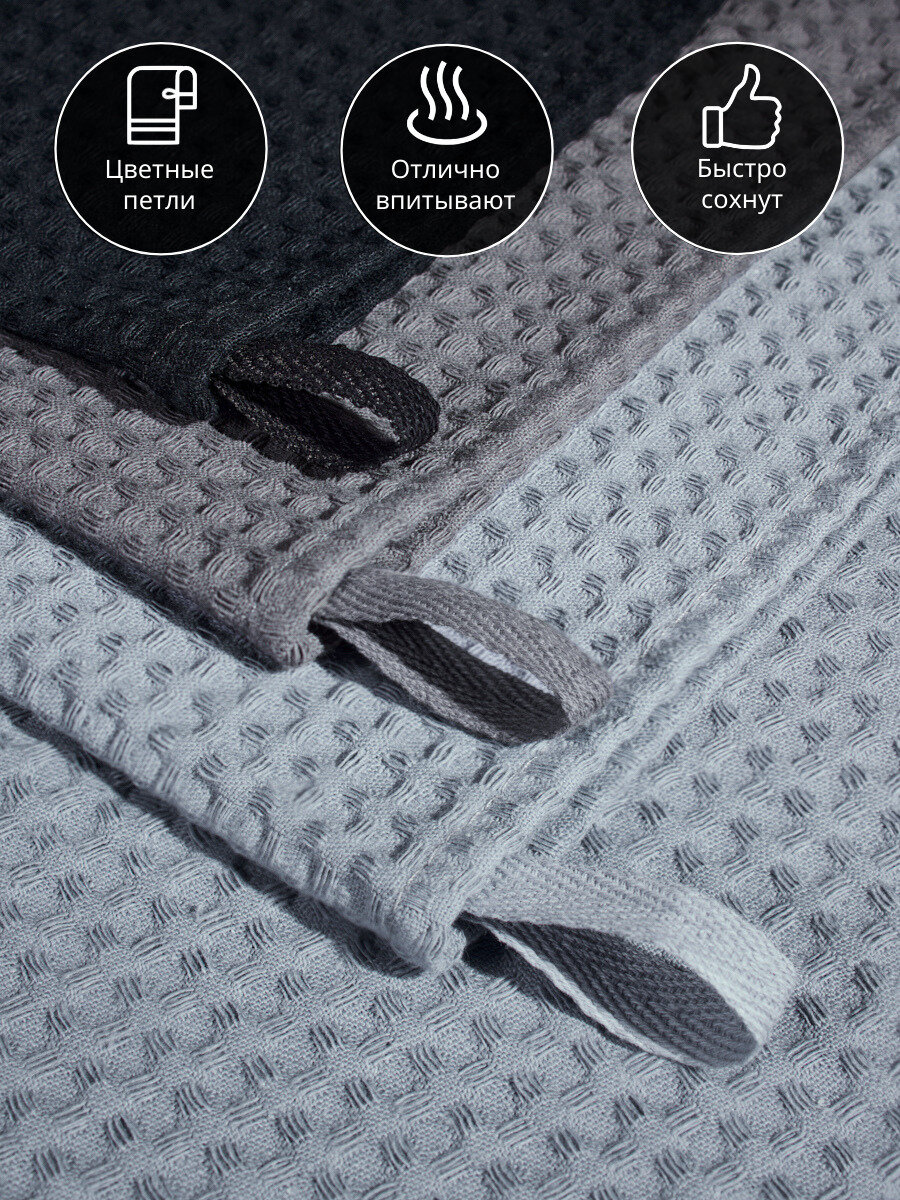 Купить Набор вафельных полотенец для кухни 45х70см, черный/графит/серый