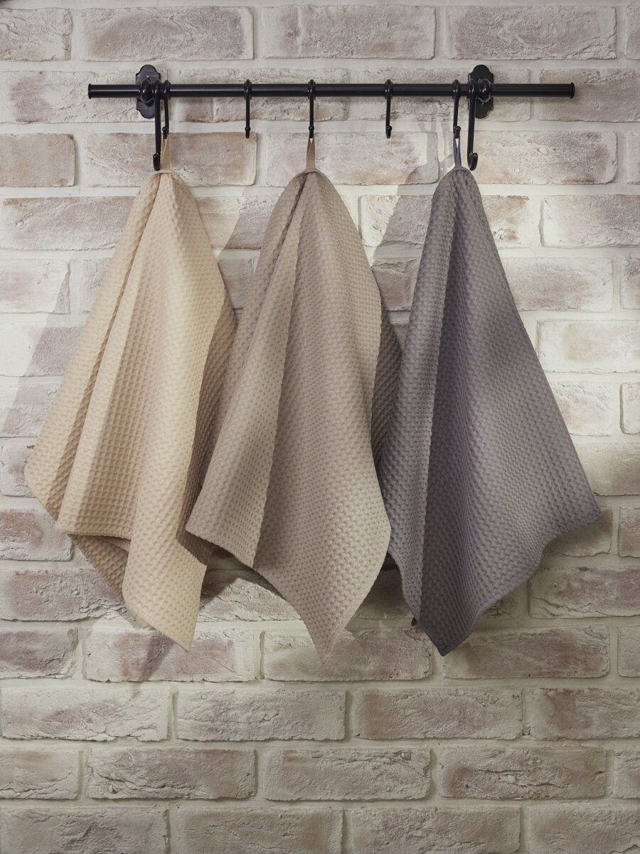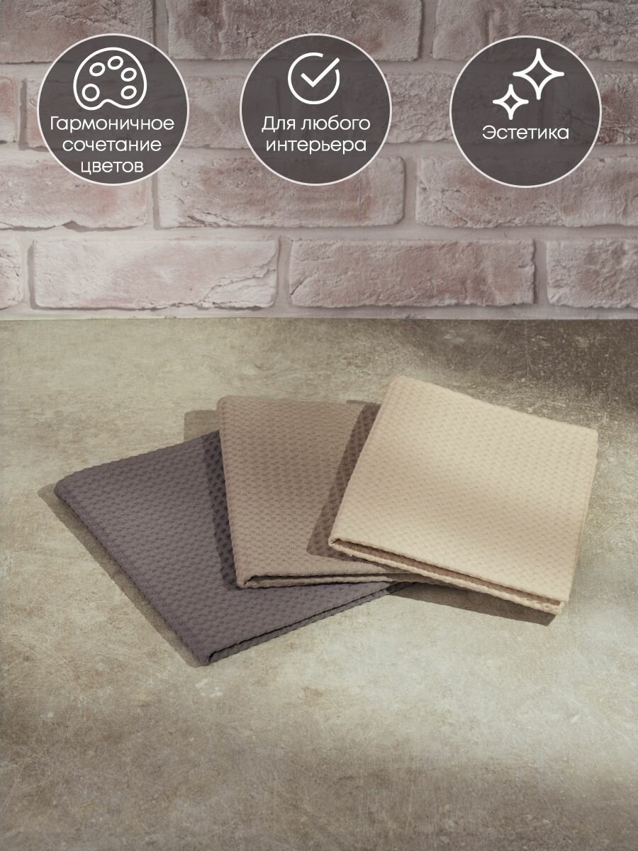 Купить Набор вафельных полотенец для кухни 45х70см, графит/грейдж/бежевый