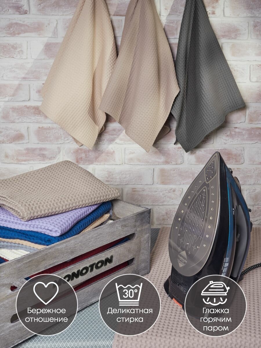 Набор вафельных полотенец для кухни 45х70см, бежевый/панг/грейдж