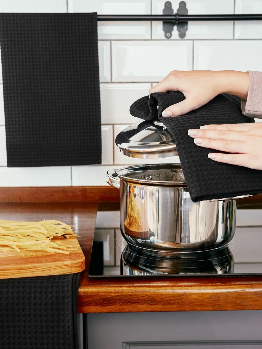 Купить Вафельные полотенца для кухни 3шт, 45х70см, черный