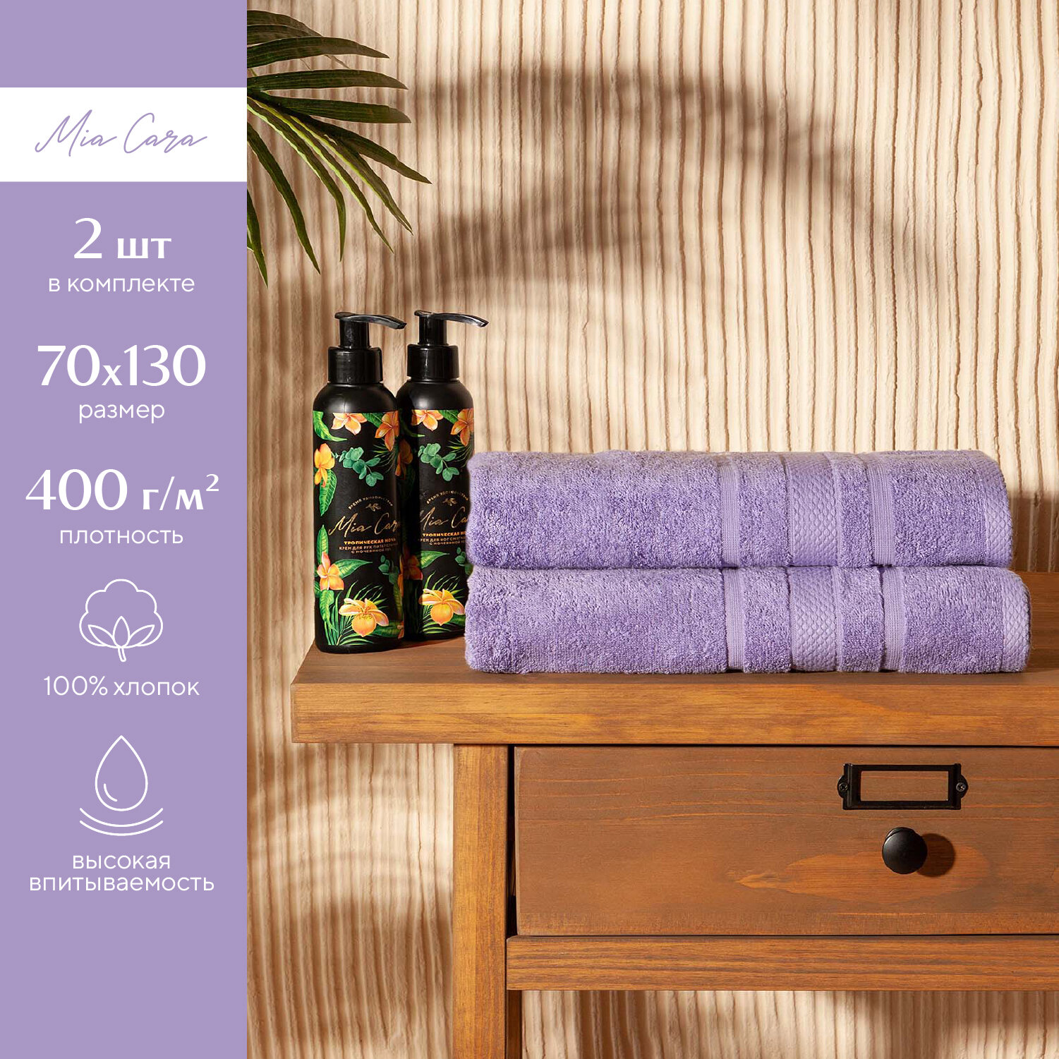 Полотенце банное махровое Mia Cara набор 2 шт 70х130 см, Барбара лаванда