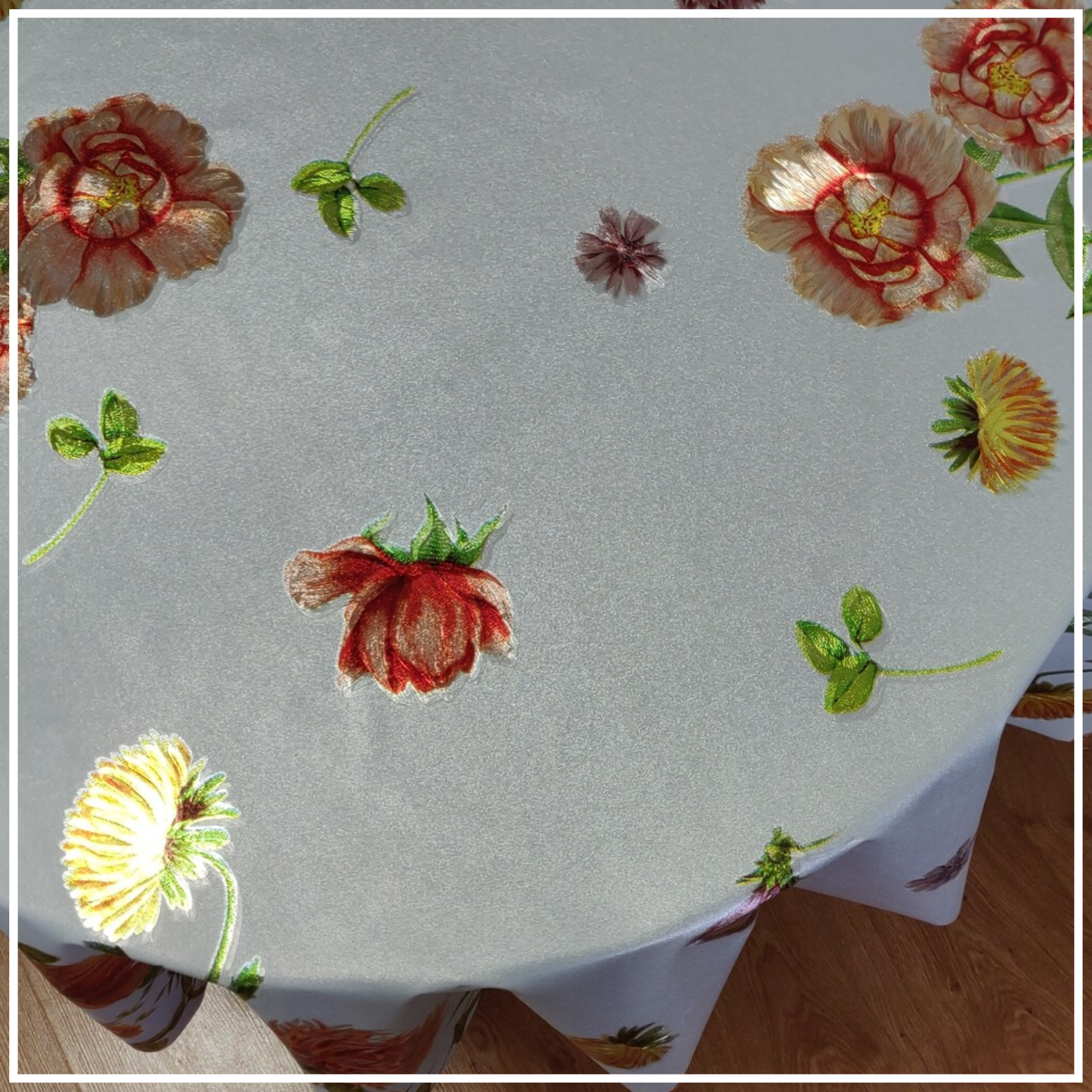 Клеенка-скатерть на стол ПВХ, на тканевой основе 140x220 см Цветы