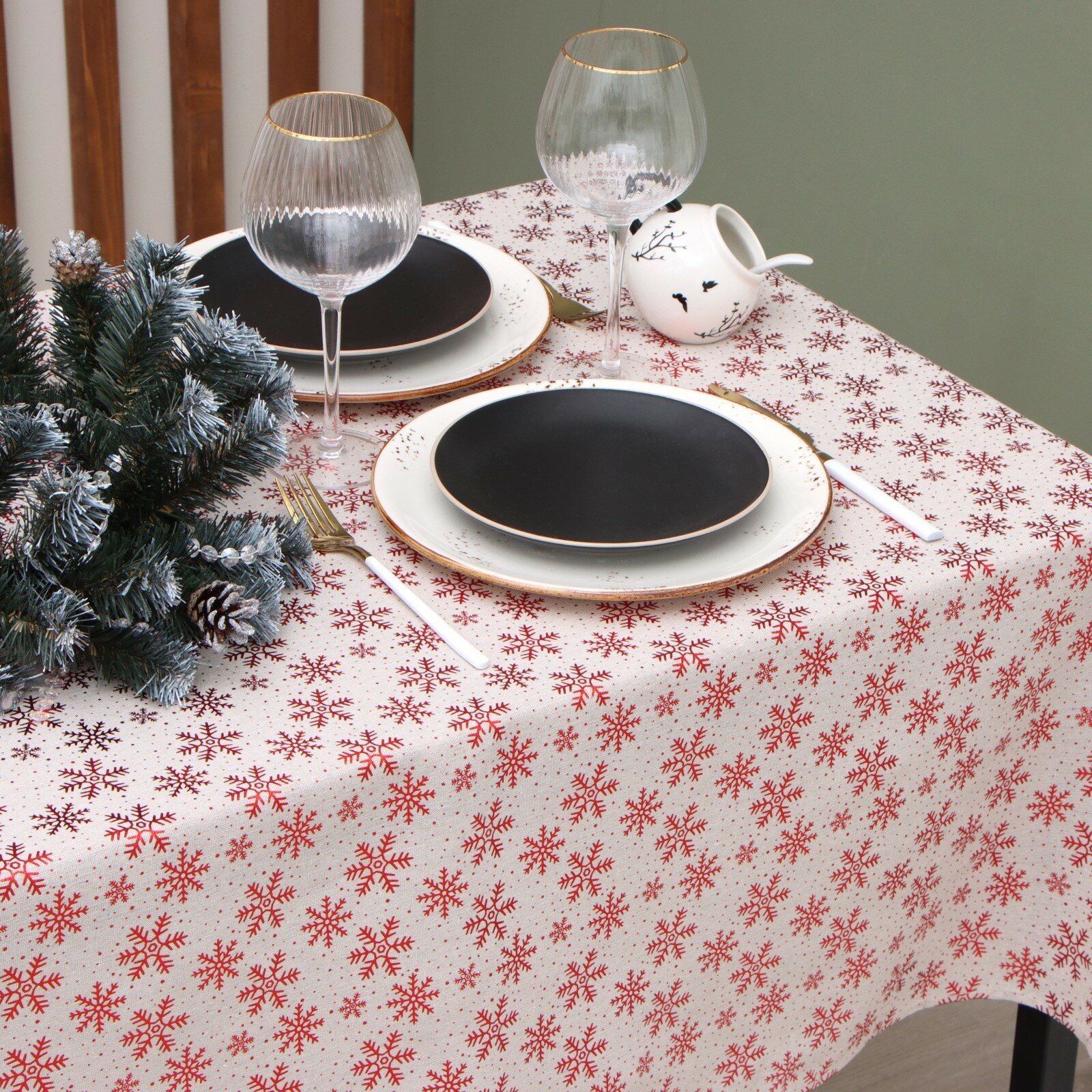 Купить Скатерть Этель Снежинки 140х220 5 см, 80% п/э 20% лен, 120гр/м2