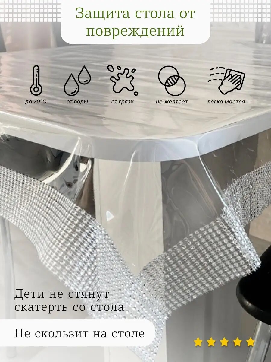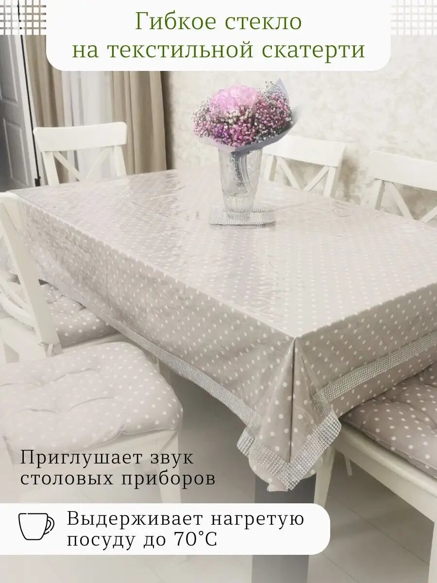 Скатерть прозрачная 140 x 190 см, толщина 0,2 мм (200 мк) / мягкое-гибкое стекло ПВХ