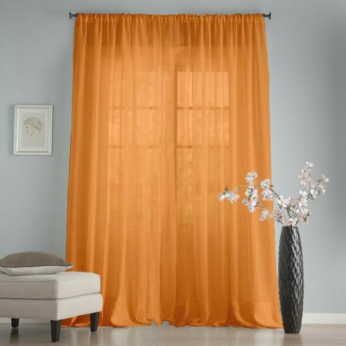 Тюль однотонный - 1 штора разм . (выс. 270 см * шир. 200см) цвет оранжевый на шторной спец.ленте для крючков и крокодильчиков шир. 6см. Т-1