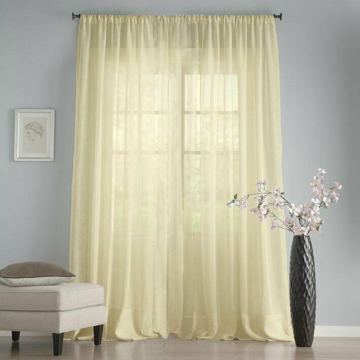 Тюль однотонный - 1 штора разм . (выс. 250 см * шир. 300см) цвет желтый на шторной спец.ленте для крючков и крокодильчиков шир. 6см. Т-1