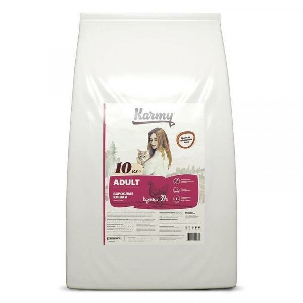 Корм Karmy Adult для кошек, с курицей, 10 кг