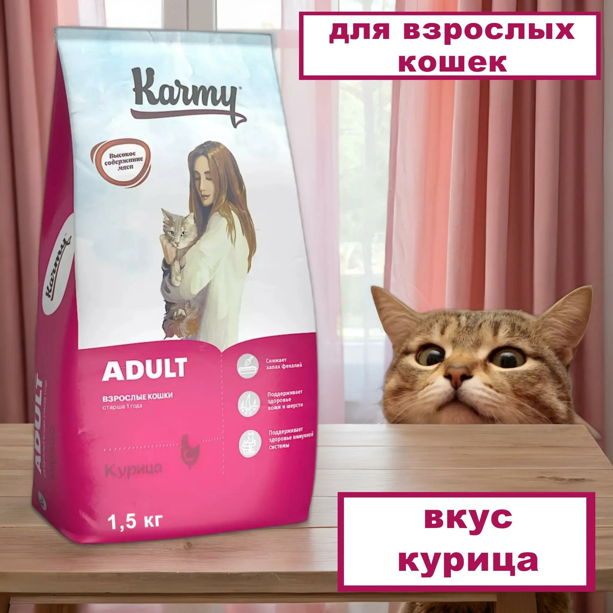 Karmy Сухой корм для взрослых кошек старше 1 года с курицей 73303 | Karmy Adult 1,5 кг 41965 (2 шт)