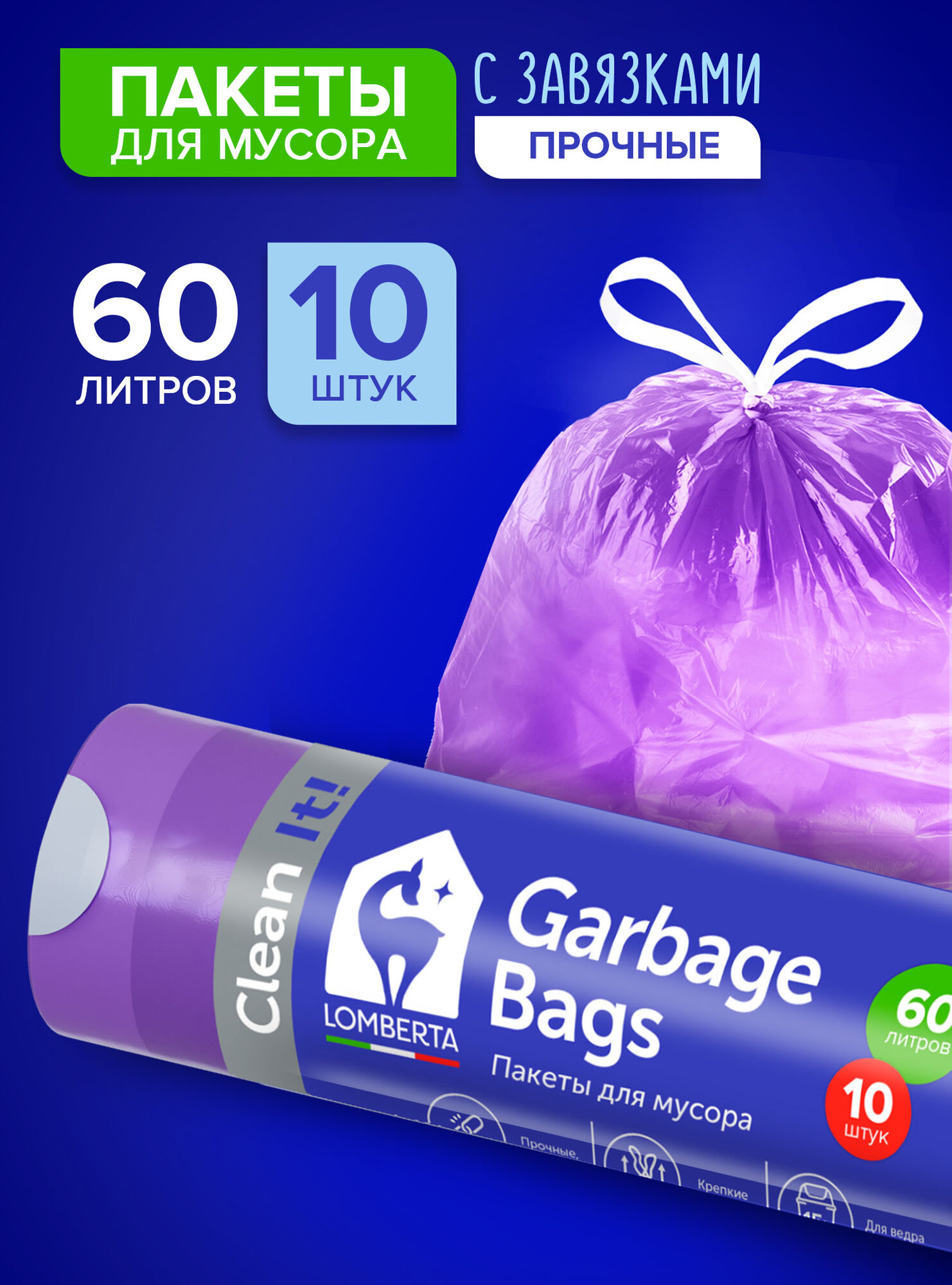 Мешки для мусора Lomberta Aroma с завязками 60 л, 10 шт, ароматизированные, прочные пакеты для мусора для дома и офиса